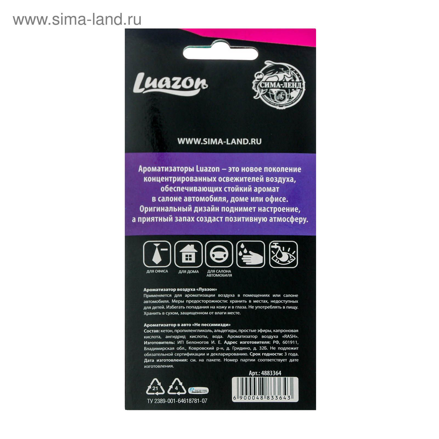 Ароматизатор бумажный «Не пессимизди» 4883364
