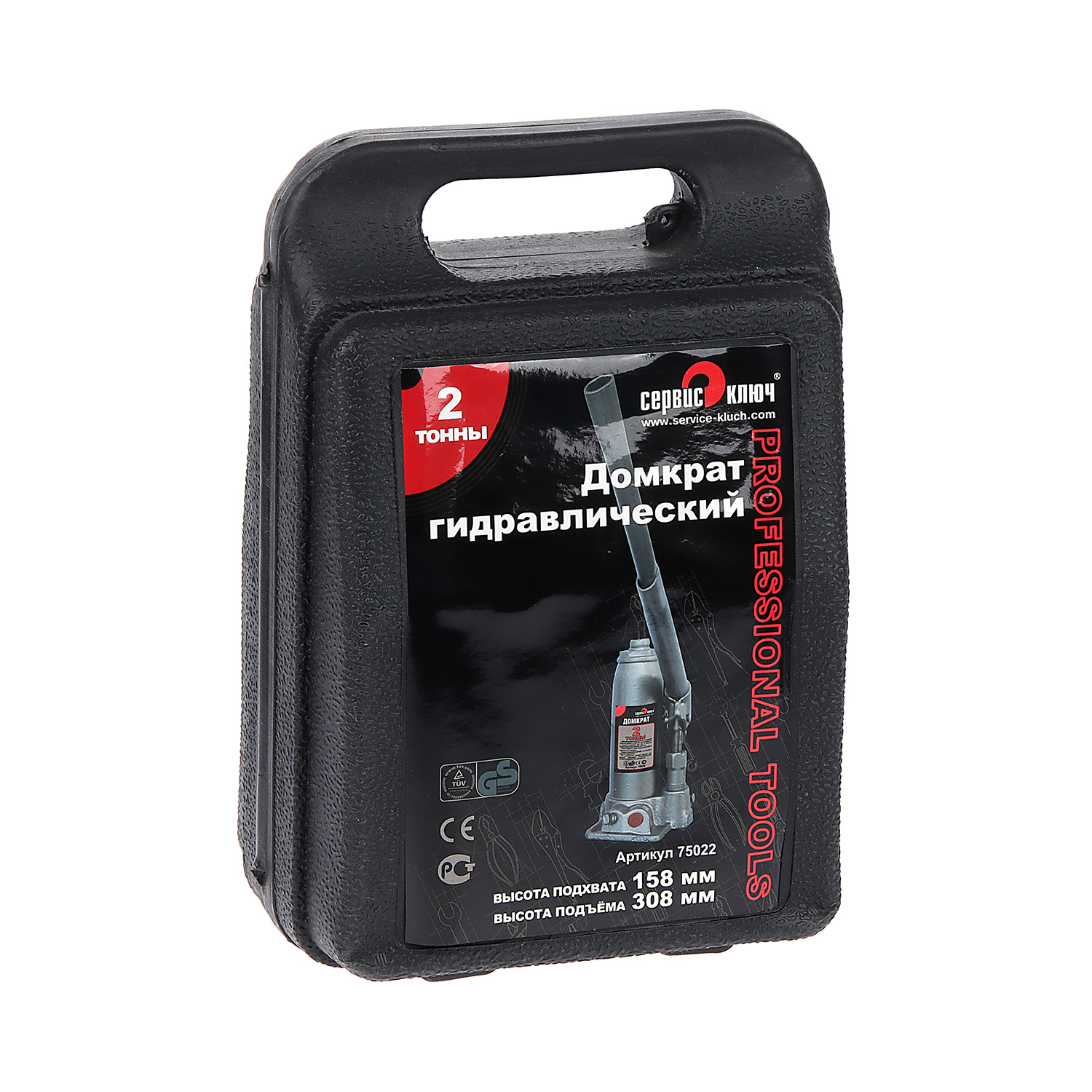 Домкрат гидравлический бутылочный 2т высота подъема 158-308 (кейс) (75022) СЕРВИС КЛЮЧ *1/6