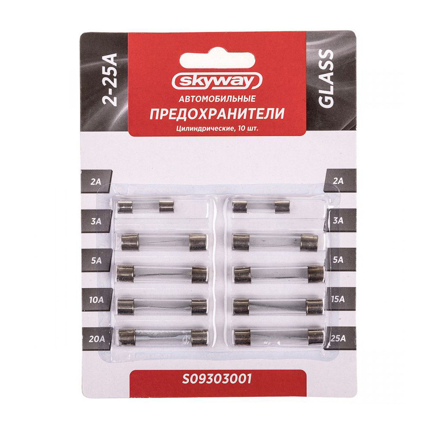Предохранитель автомобильный стеклянный Skyway, цилиндрический, 2-25А, наб, S09303001 4182510