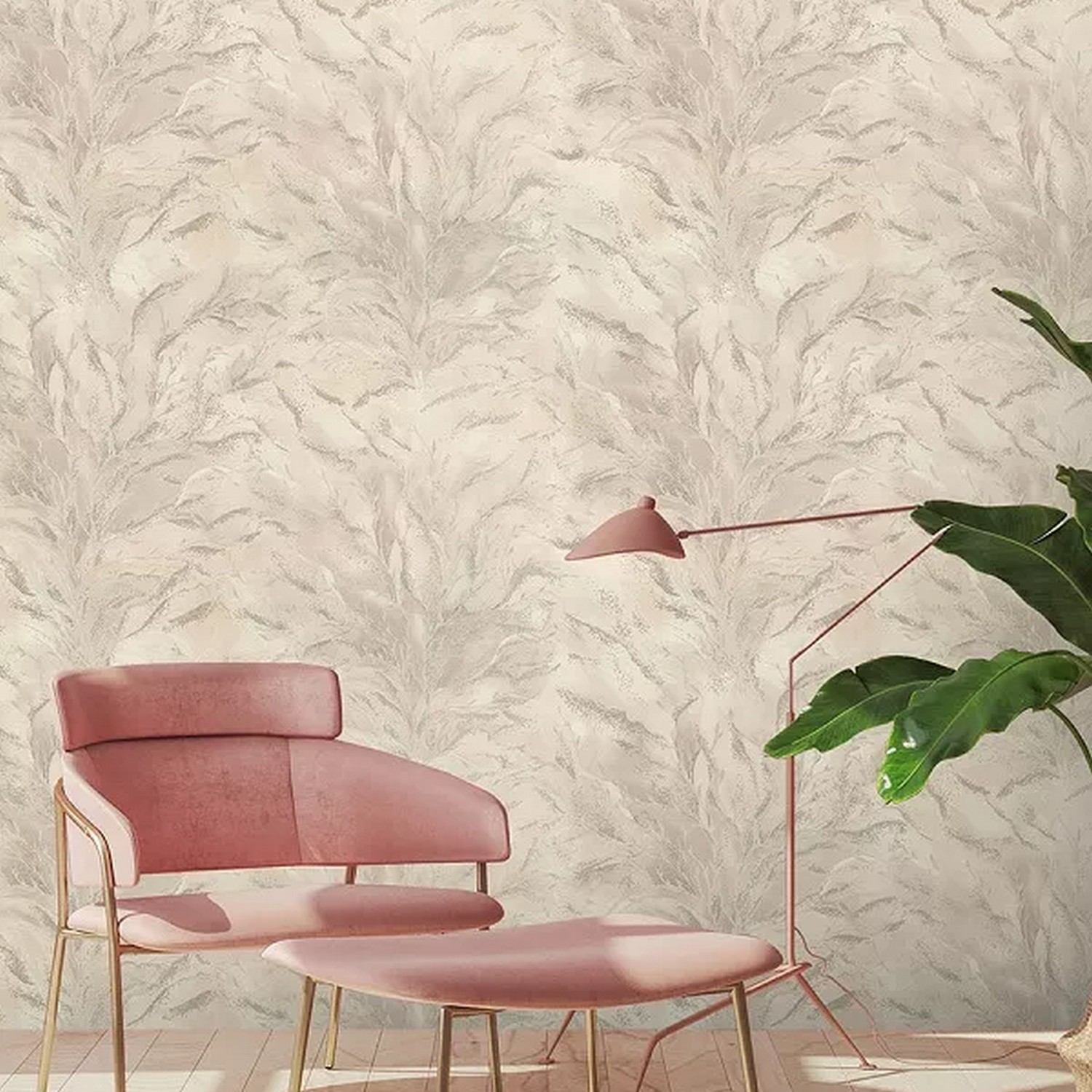 Фон коллекции «Fern» выполнен в спокойных пастельных тонах и имитирует текстуру рогожки, покрытую перламутром. Такое решение поддерживает основной мотив и придает всей коллекции атмосферу уюта и комфорта.
