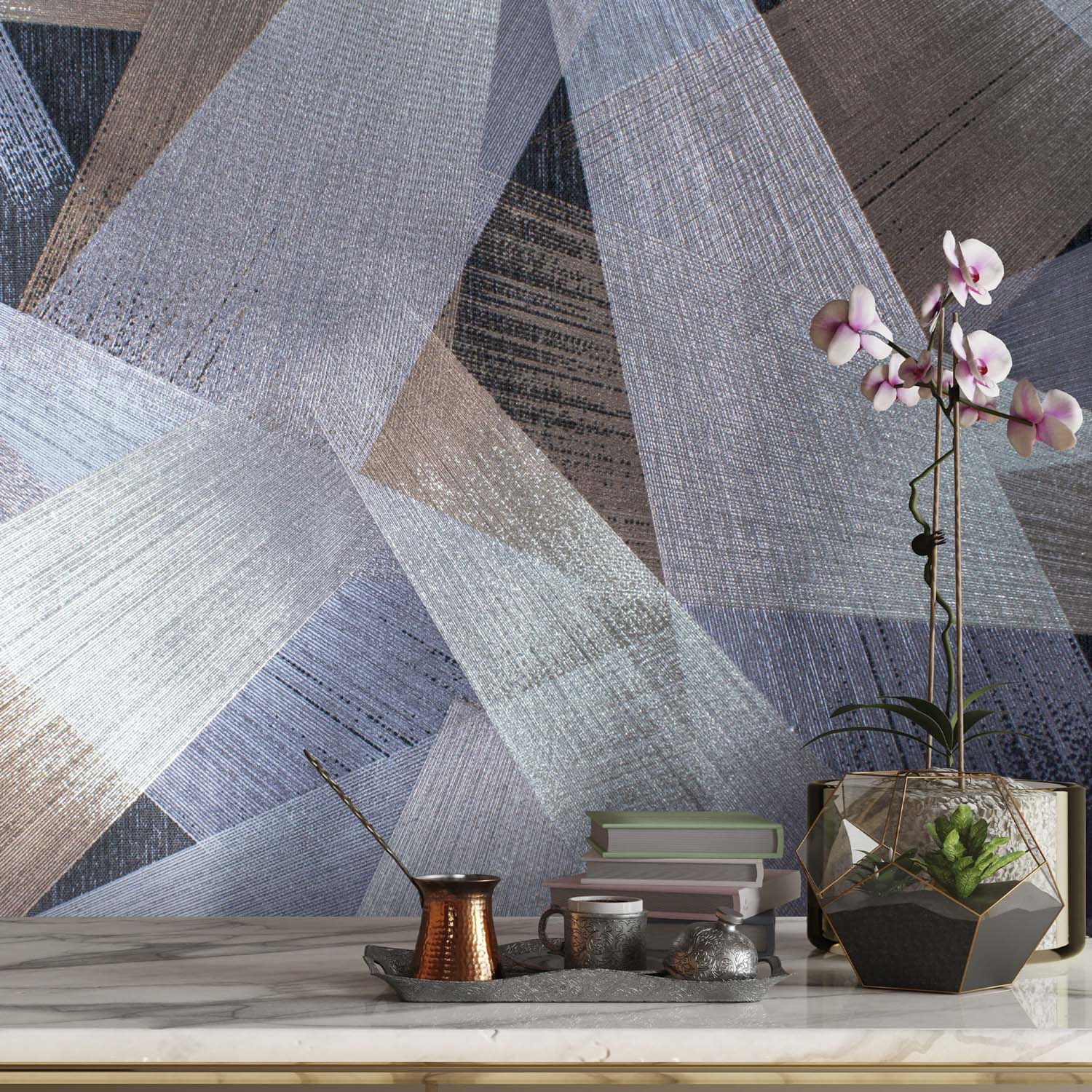 Главная роль в коллекции ARIA от Victoria Stenova, безусловно, принадлежит полупрозрачной ветке, выполненной слегка небрежном итальянском стиле, без строгой симметрии, присущей строгим классическим дизайнам обоев. Роскошный и ненавязчивый дизайн в жемчужной гамме смотрится очень целостно и органично в современном интерьере. Люди, выбирающие неоклассические интерьеры, характеризуются как успешные и рассудительные приверженцы традиций. Но наши обои одинаково уместны и в огромной гостиной с 3-х метровыми потолками и в маленькой спальне с потолком 2.5 метра. Мы декларируем тренд на шелковое сияние полотна, на благородные светлые переливающиеся фактуры, при производстве этой коллекции мы используем только перламутры и металлизированные краски. Сложное, многоуровневое тиснение фона словно светится изнутри, в этом проекте мы выбрали тактику максимального объединение центрального элемента и фона, уделив одинаковое внимание в проработке и использовании декоративных эффектов на всей фактуре в целом.