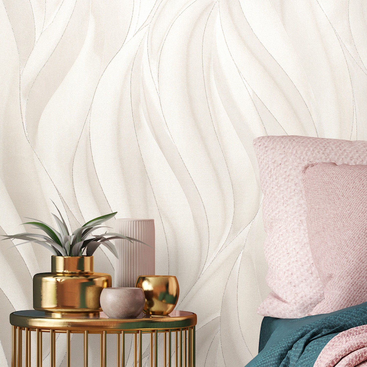 Коллекция Zoloto — это прежде всего богатая фактура с перламутровыми и металлизированными пигментами; потрясающий эффект объема, который достигается благодаря разнонаправленной структуре, и переливы, напоминающие дорогую шёлковую ткань, усиливают эффект глубины и визуально расширяют пространство. Плавные линии, словно река струящиеся по полотну, изящно подчеркнуты тонкой металлизированной нитью, они добавляют лоска пространству и создают эффект движения.