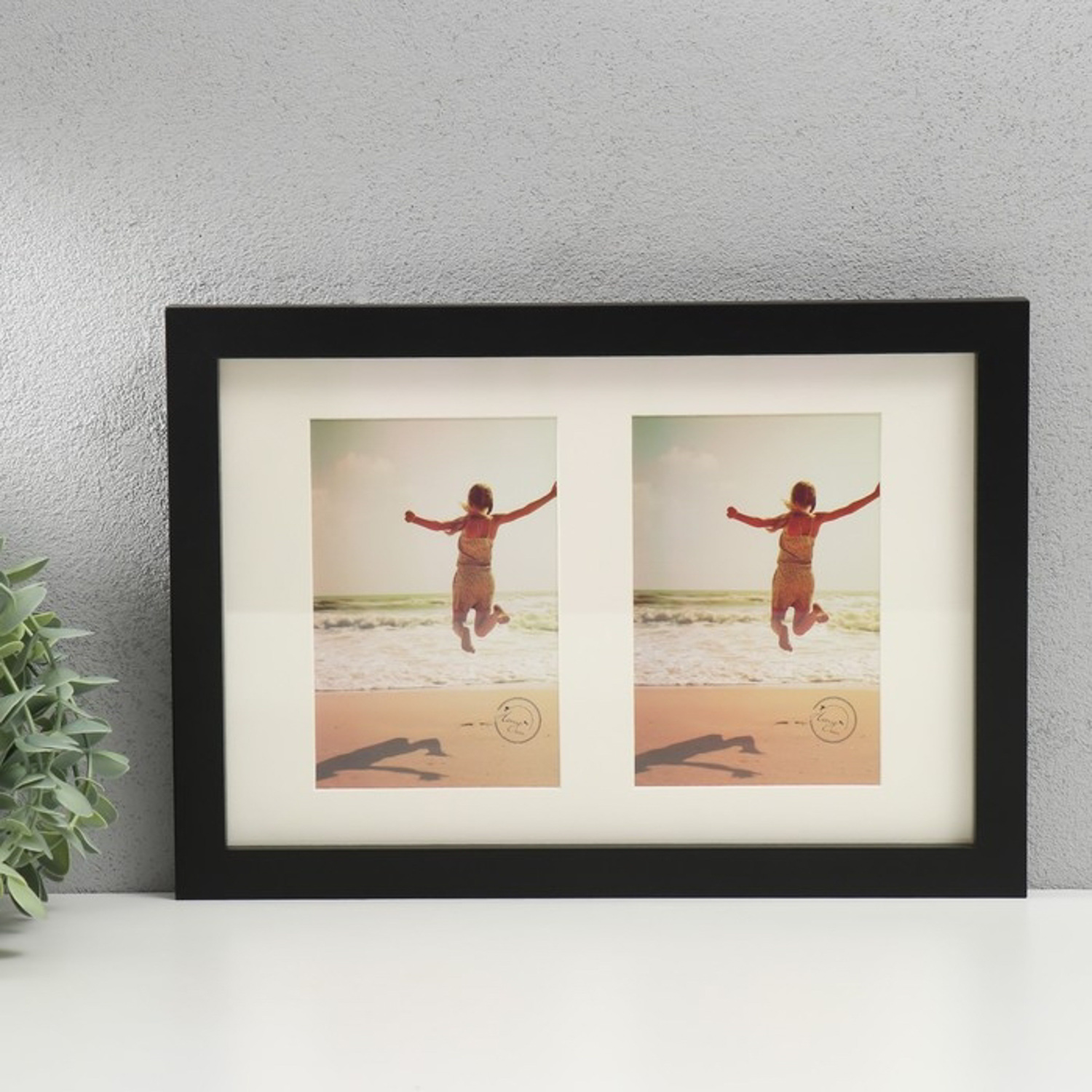 Фоторамка дерево, стекло на 2 фото 10х15 см "Паспарту" чёрная 2х23х33 см 9614908