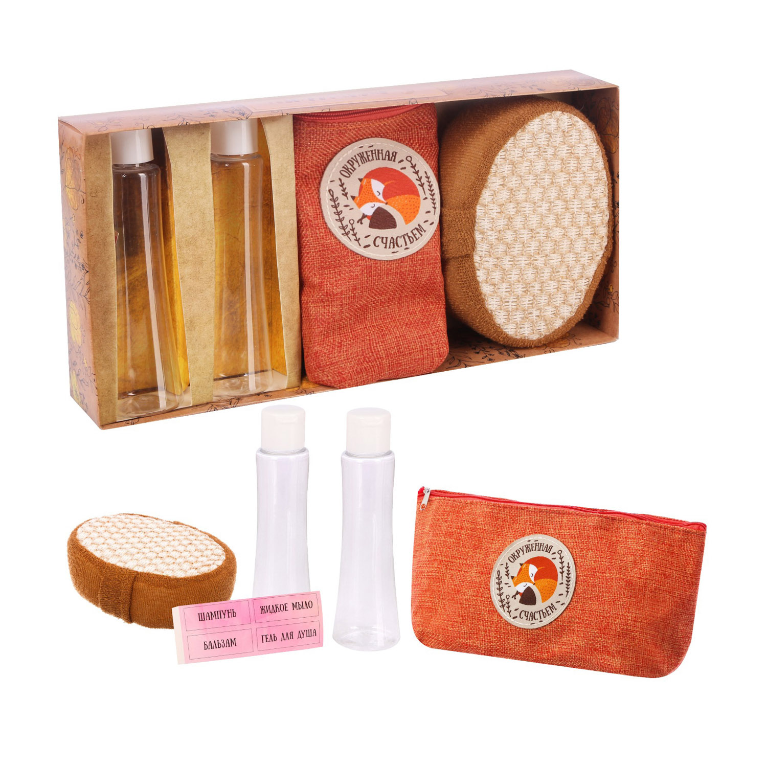 яяяНабор косметичка+мочалка+2 бутылочки "С теплыми пожеланиями" 2494986