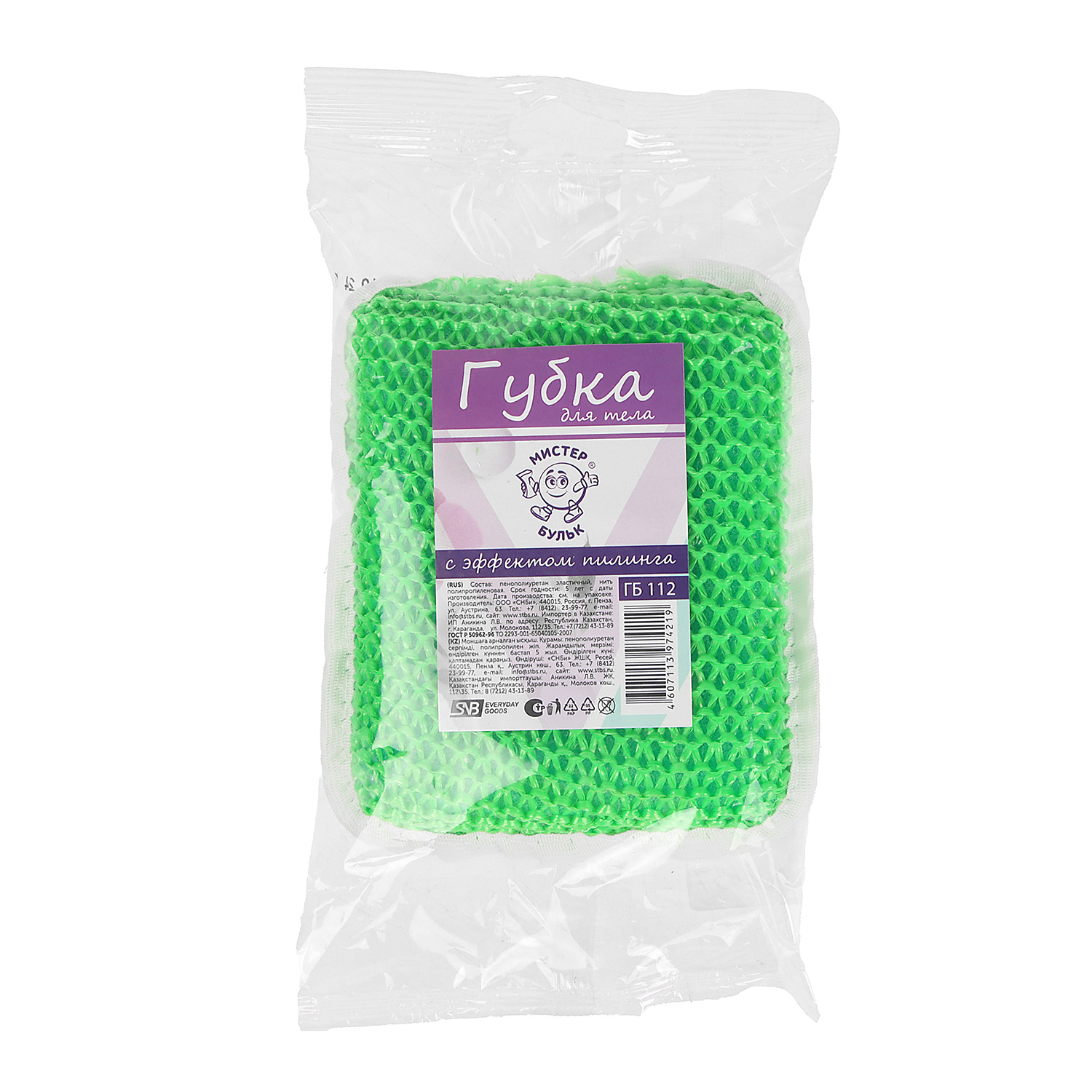Губка для тела с эффектом пилинга 10*13*4см цвет микс Мистер Бульк *10/30