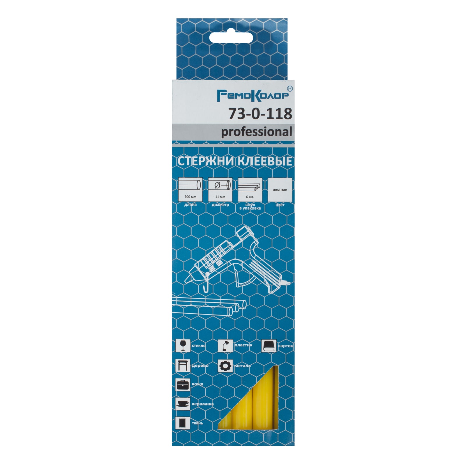 Стержни клеевые 11*200мм желтые (уп.6шт) арт.73-0-118 Ремоколор*1/80/160