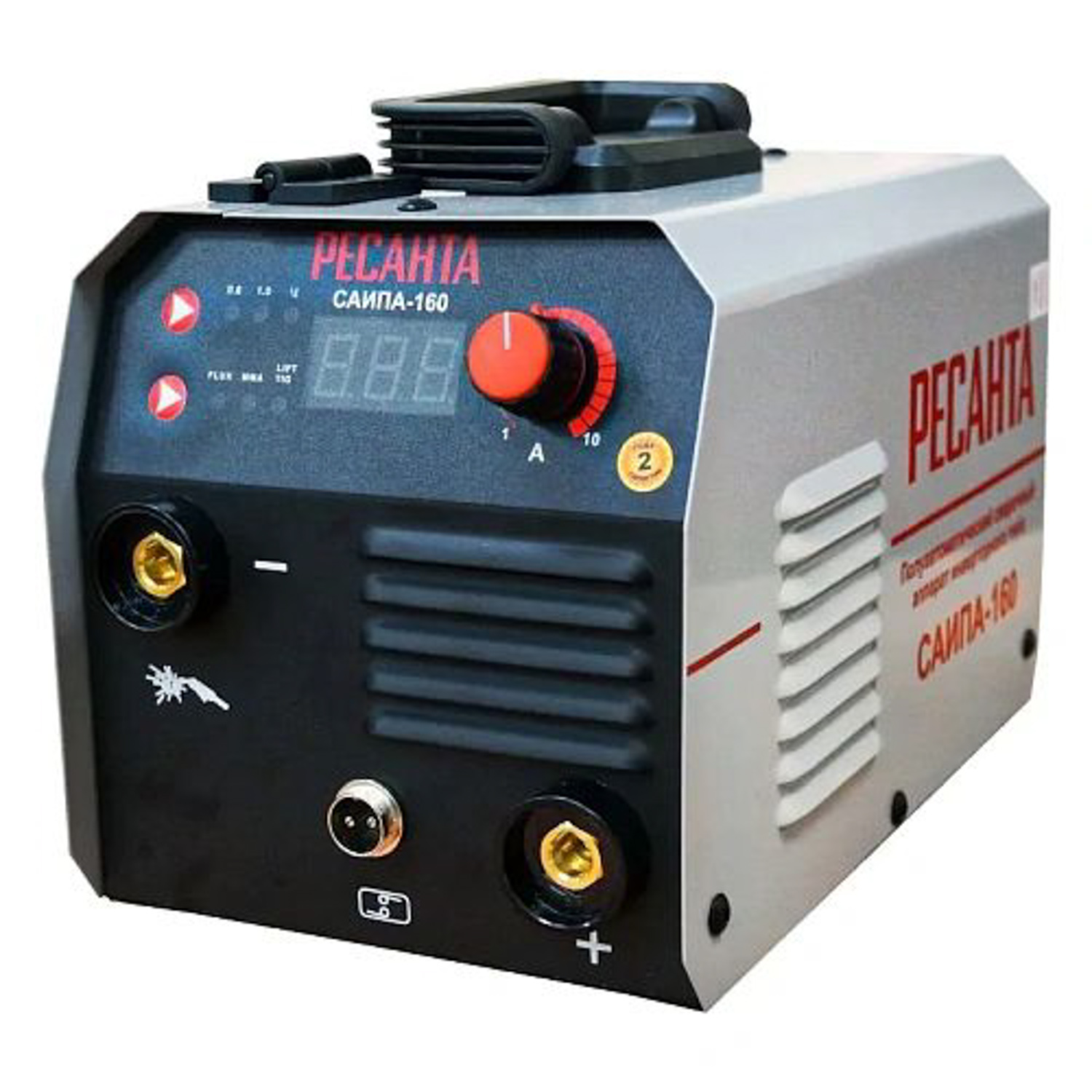 Сварочный полуавтомат Ресанта САИПА-160 мощностью 6.2 кВт с регулируемым сварочным током от 30 до 160 А поддерживает режим FCAW — полуавтоматической сварки самозащитной порошковой проволокой, подходит для работы в режимах MMA и TIG.