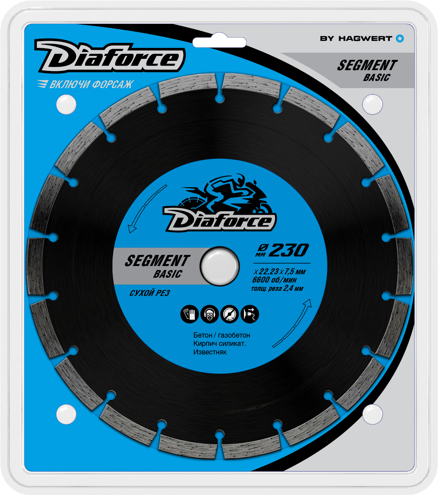 Диск алмазный 230*22,23*2,2мм по бетону/кирпич сегмент сух.рез арт.510230 SegmentBasic Diaforce*1/10/20