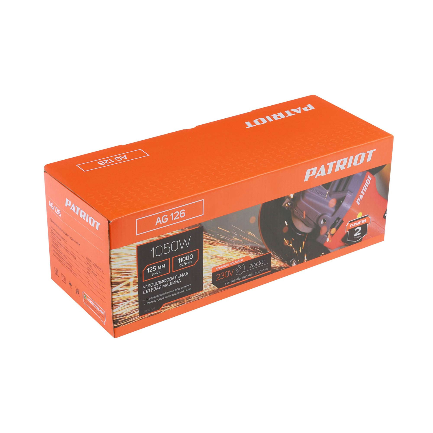 Шлифмашина угловая 125мм 1050Вт 11000об/мин М14 AG 126 PATRIOT *1/6