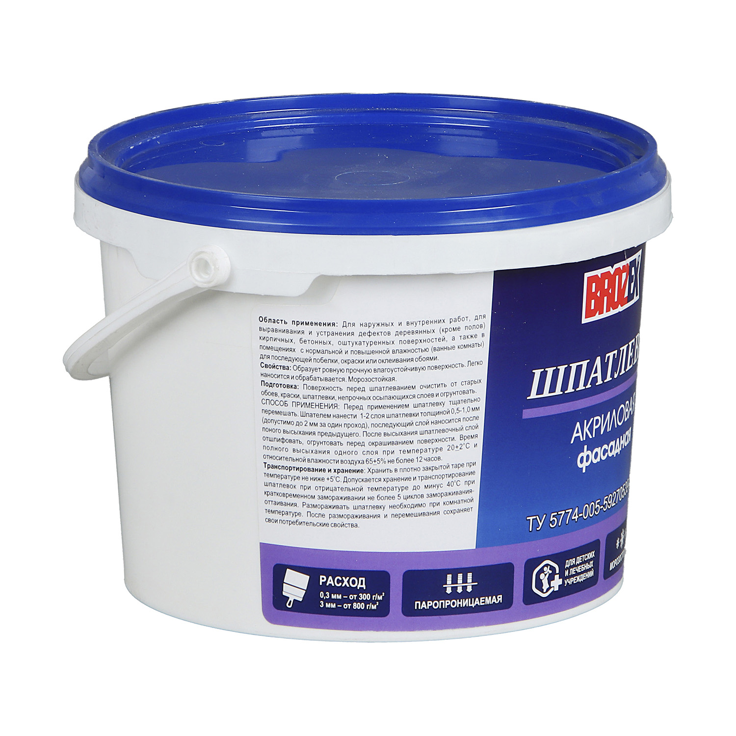 Шпатлевка Фасадная BROZEX, акриловая, 3 кг