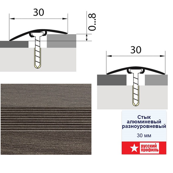 Порог-стык разноуровневый 30х900 мм Русский профиль, скрытый крепеж, дуб марон