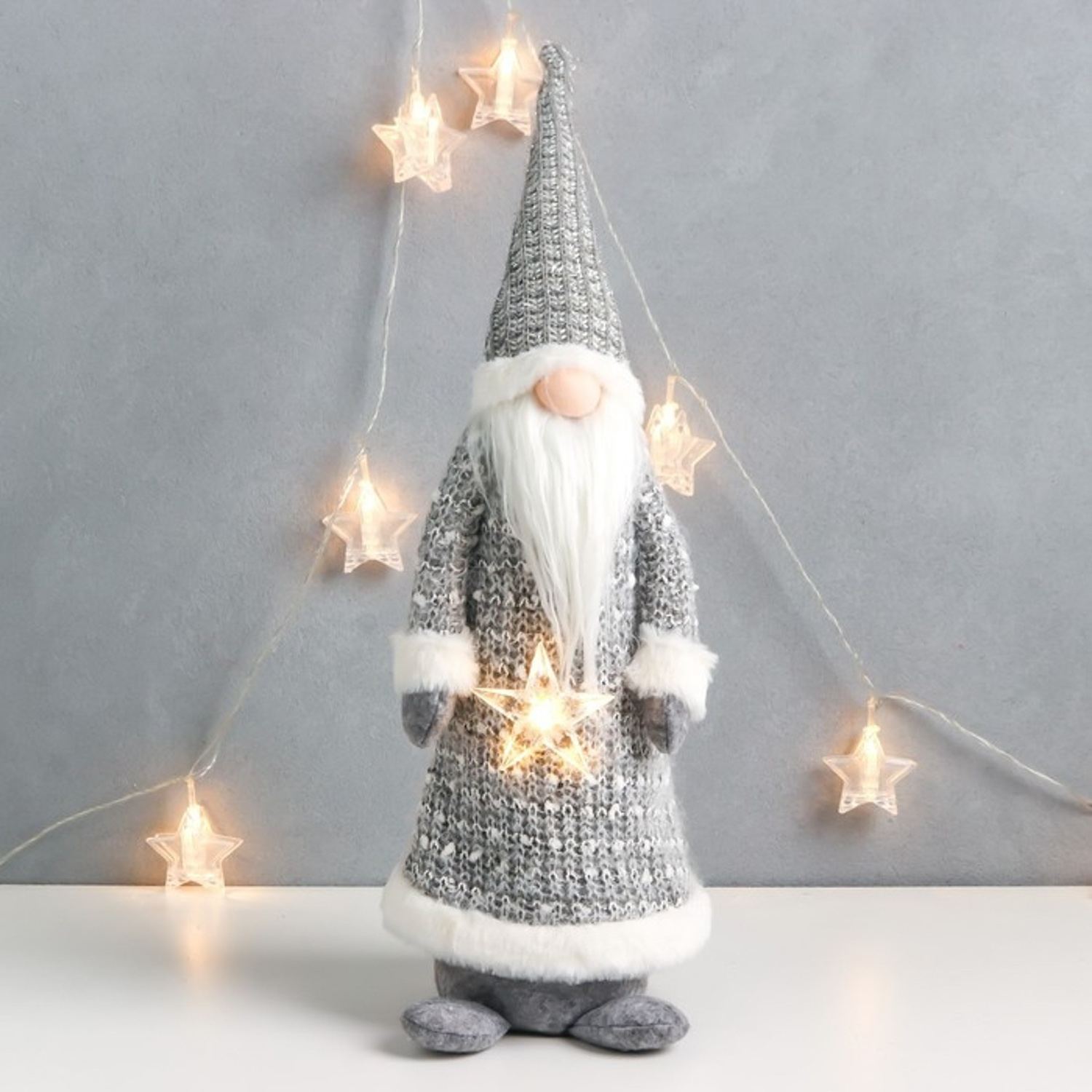 Кукла интерьерная свет "Дедушка Мороз в сером кафтане, держит звёздочку" 60х16х13 см 7567952