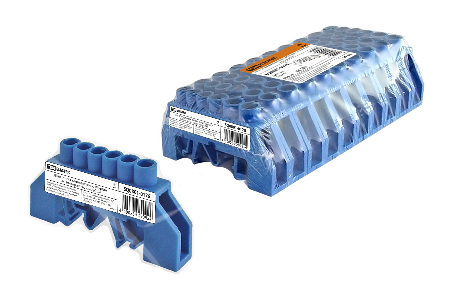 Шина "N" нулевая с изолятором на DIN-рейку 8х12мм стойка 6 групп TDM SQ0801-0176 инд шк *20