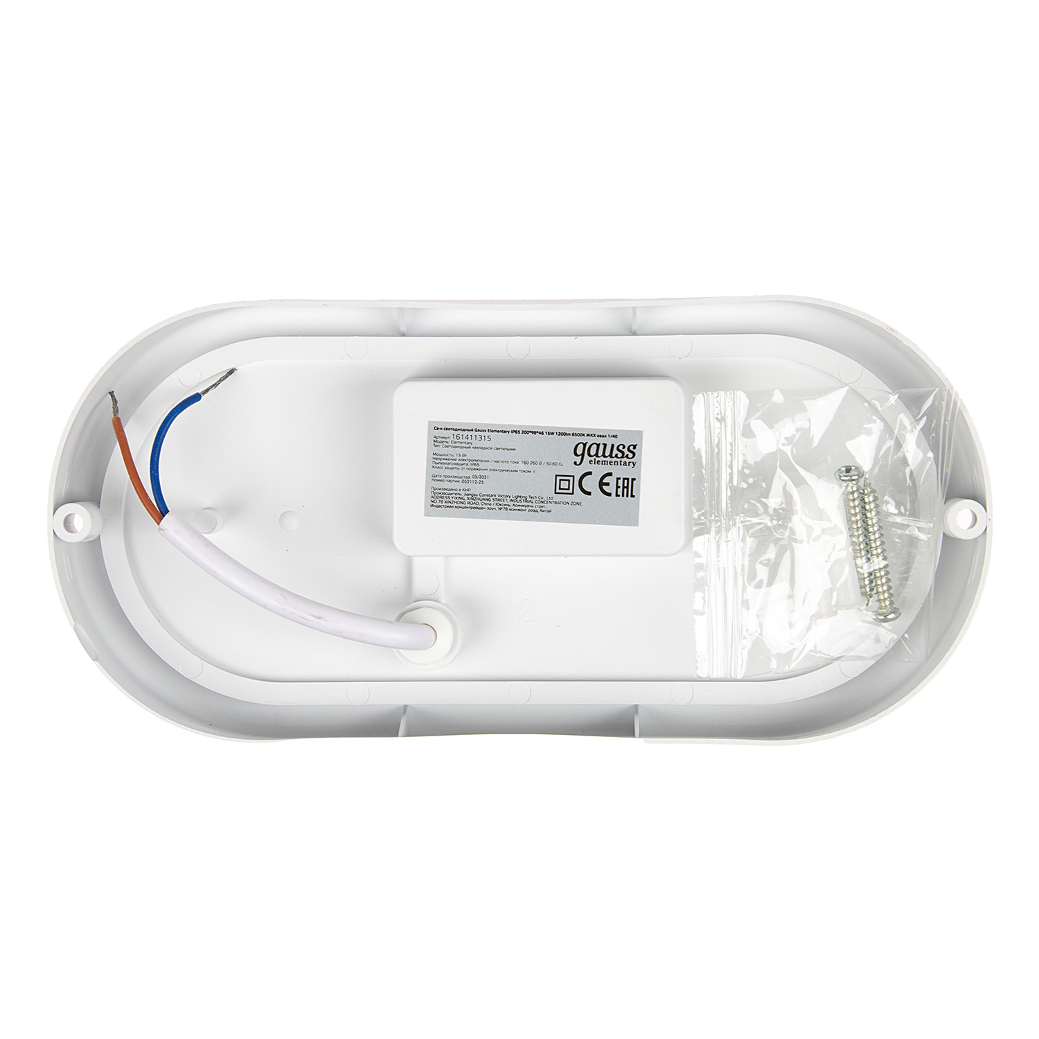 Светильник накладной светодиодный 15Вт 6,5К 1100Лм IP65 овал белый ЖКХ Gauss 161411315 *1/40