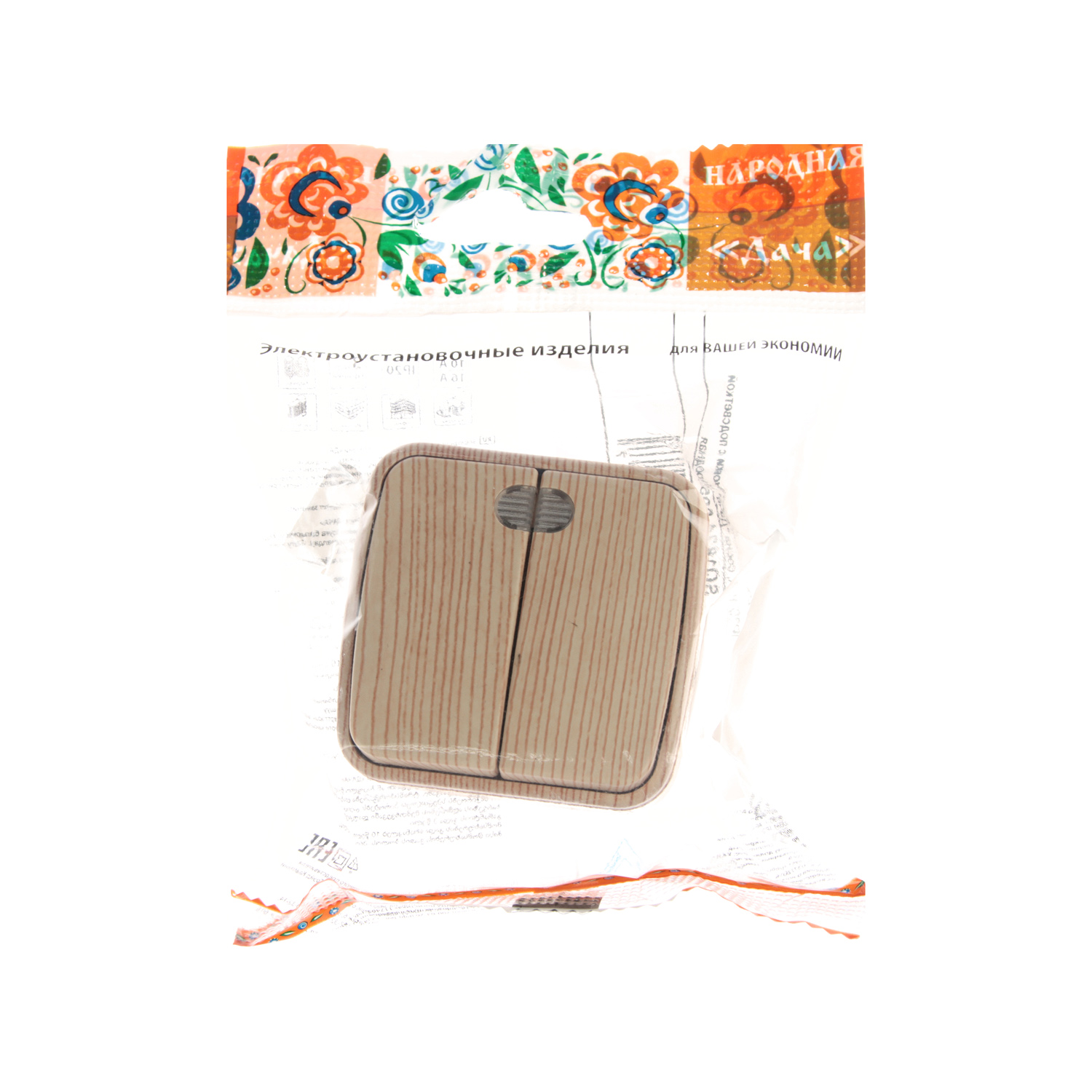 Выключатель Дача ОП 2кл. сосна с подсветкой 10А Народная SQ1824-0054