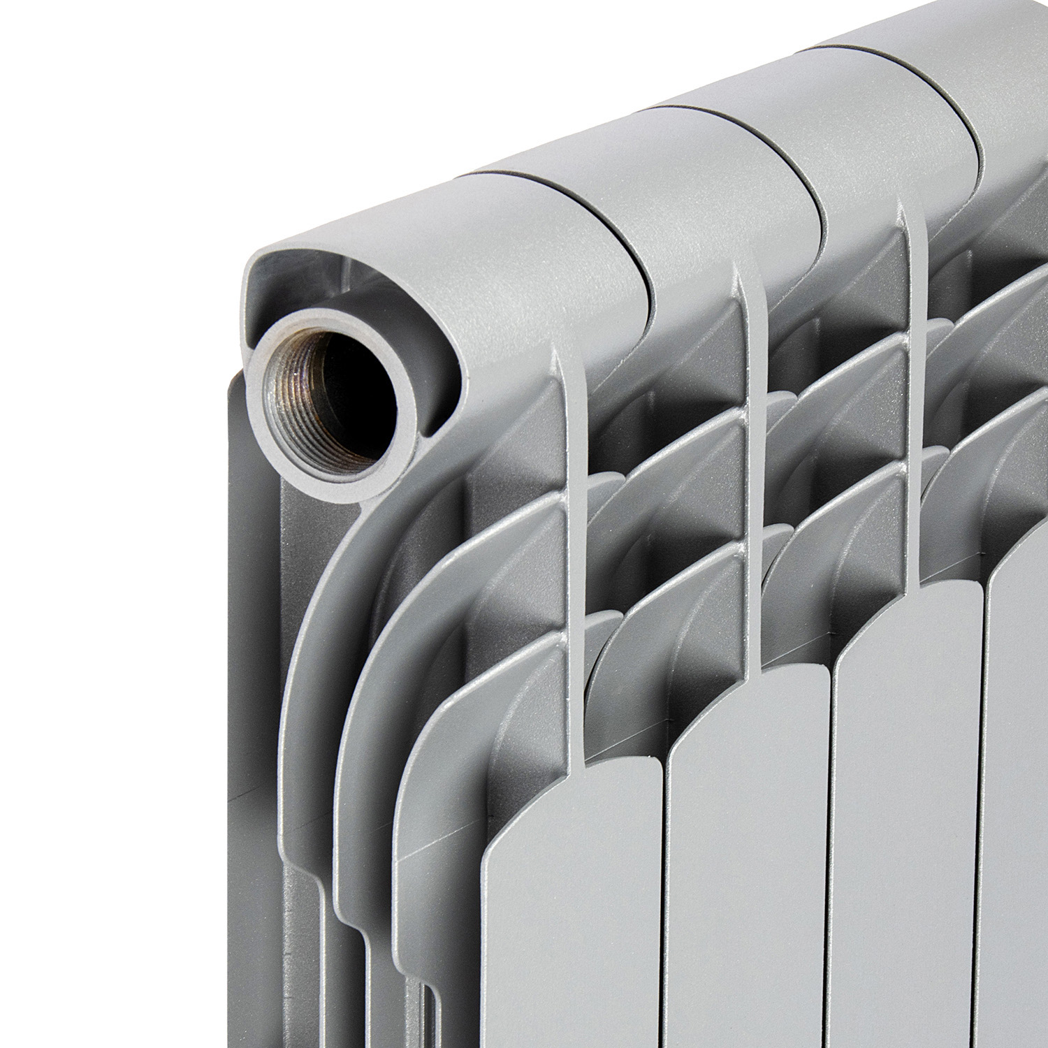 Биметаллический радиатор для любых систем отопления с боковым подключением.