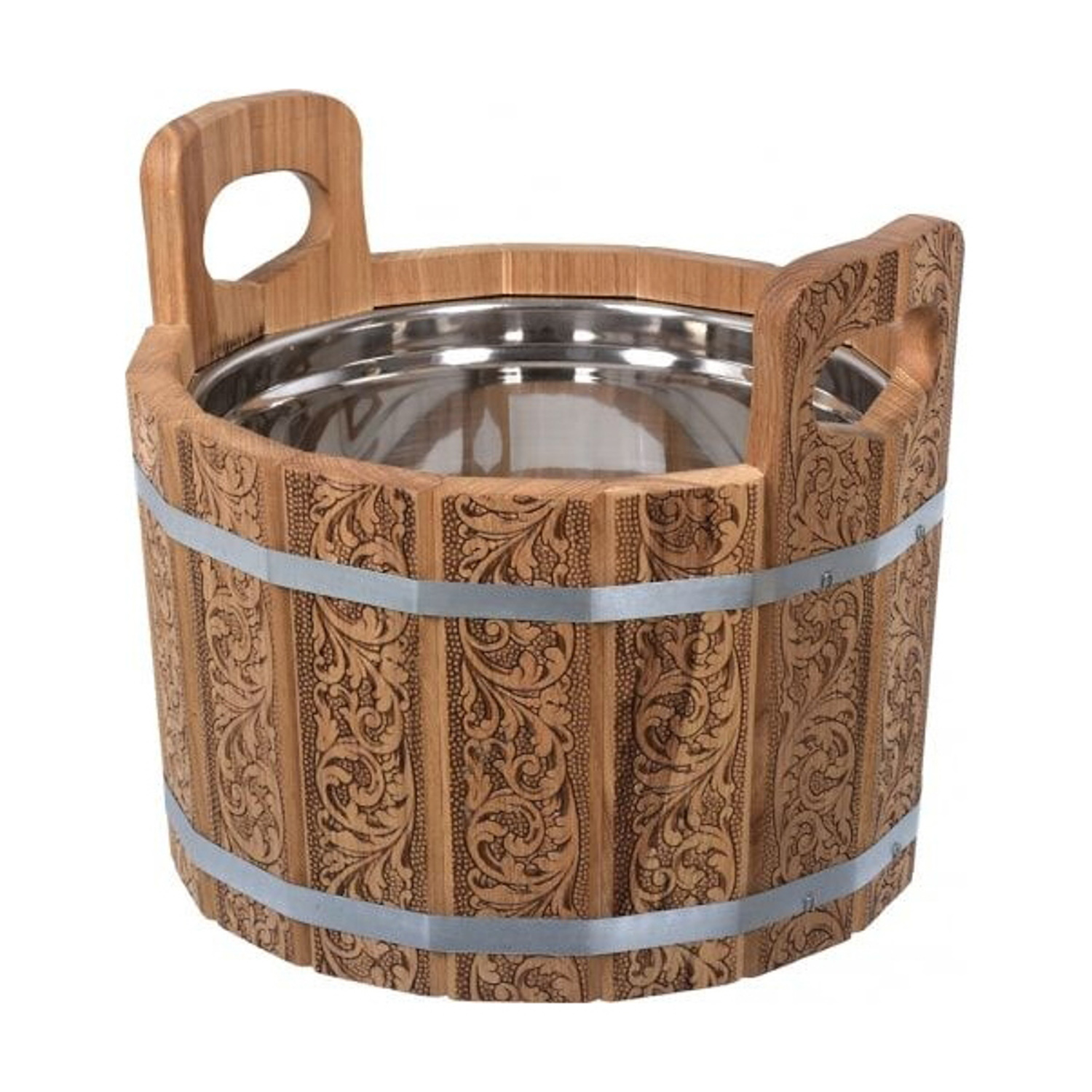Ушат "шайка", 10 л, «Цветочный орнамент», c нержавеющей вставкой, дуб "Банные штучки" в кор./1