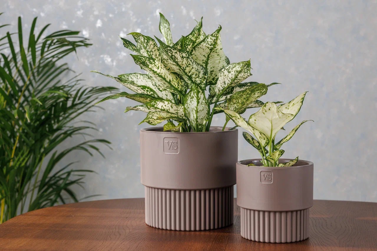 Кашпо пластм. "Бостон" 1,6л d верха 137мм h132мм со вставкой Шоколад АМБ-1,6-04 ("VipSet") *1/10