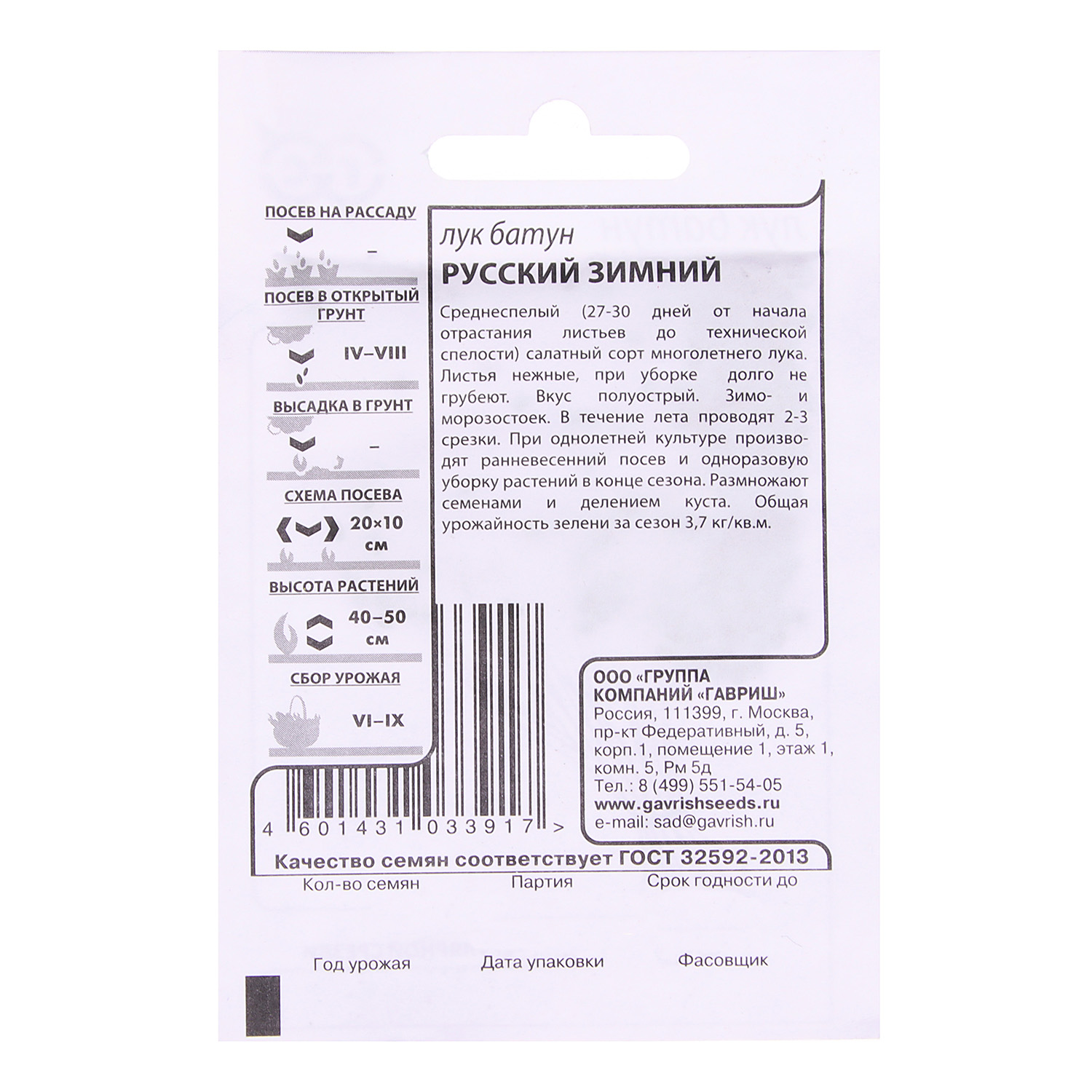 Семена Лук батун Русский зимний 0,5гр Гавриш БЕЛ *20/500