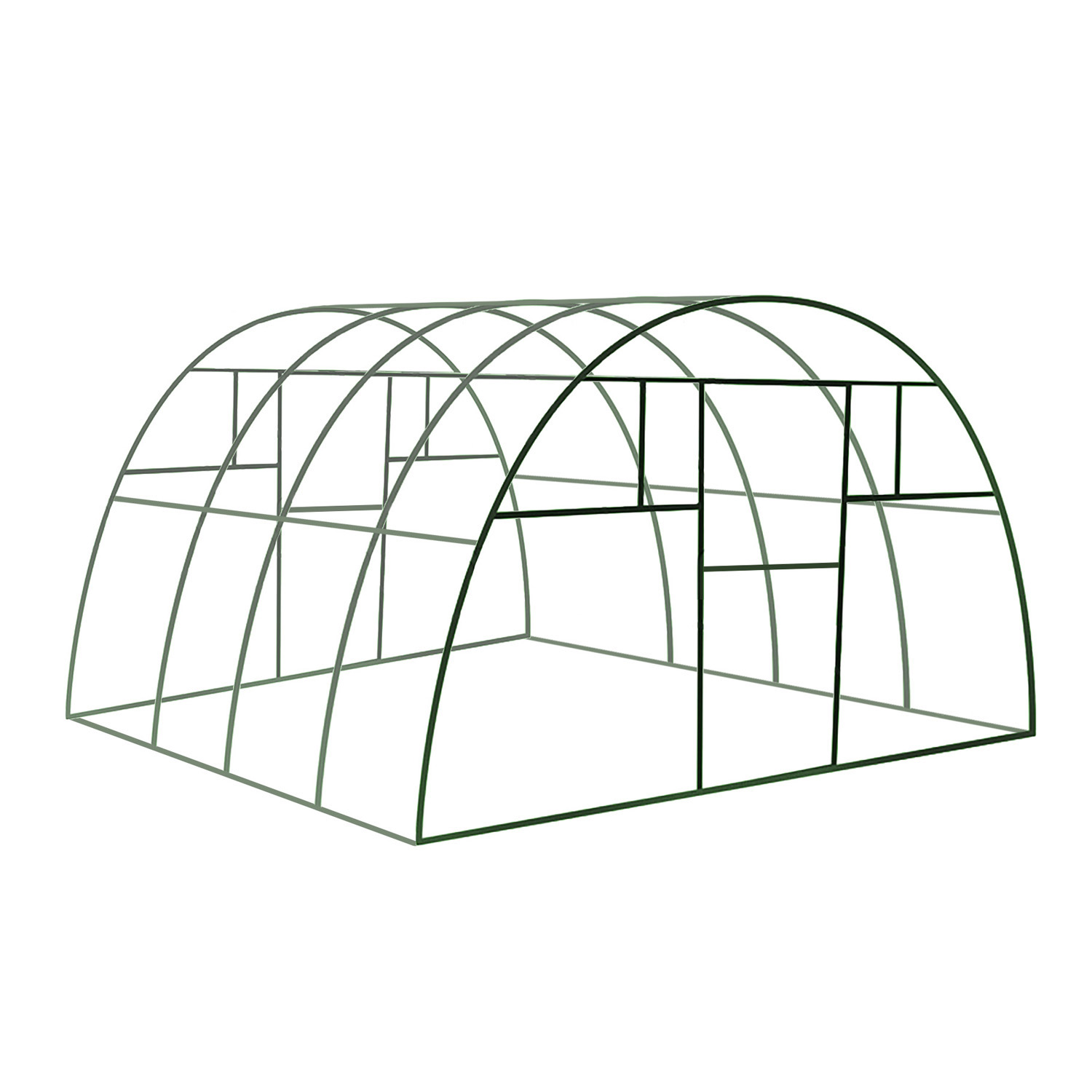 Каркасы легко трансформируются, что позволяет изменить размеры полезной площади. Конструкцию можно применять при строительстве сборно-разборных сезонных теплиц и в качестве капитального сооружения. В каркасе предусмотрены двери и форточки, расположенные с обеих торцевых сторон.