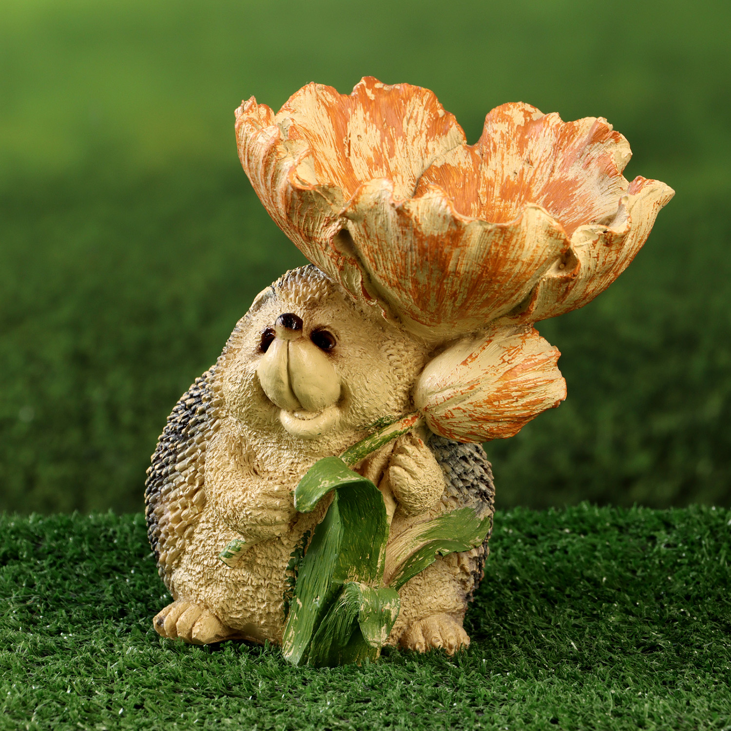 Садовая фигура - кормушка "Ёж с цветком" 16см 10330345