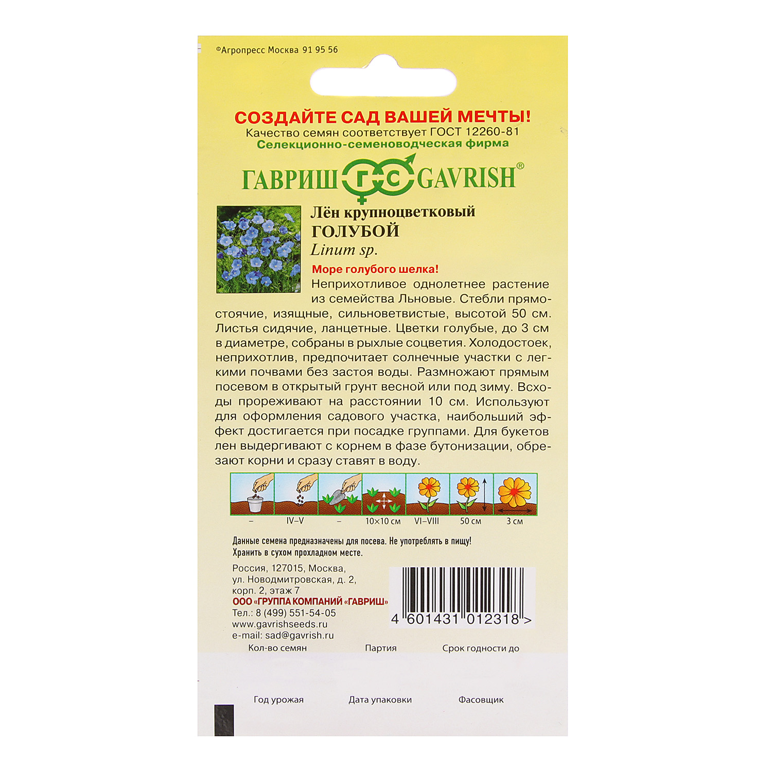 Семена Лён Голубой крупноцветковый 0,2гр Гавриш *10/200