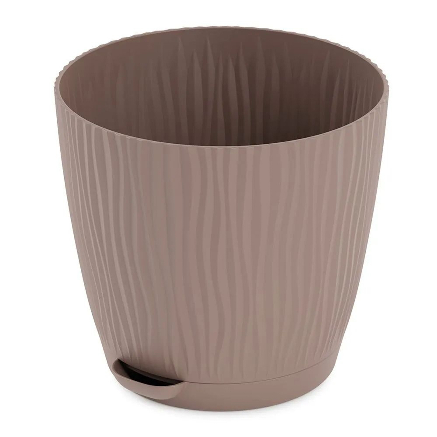 Кашпо пластм. "Флис" 0,75л d верха 115мм h110мм с поддоном, прикорн.полив Какао М8427 *1/24