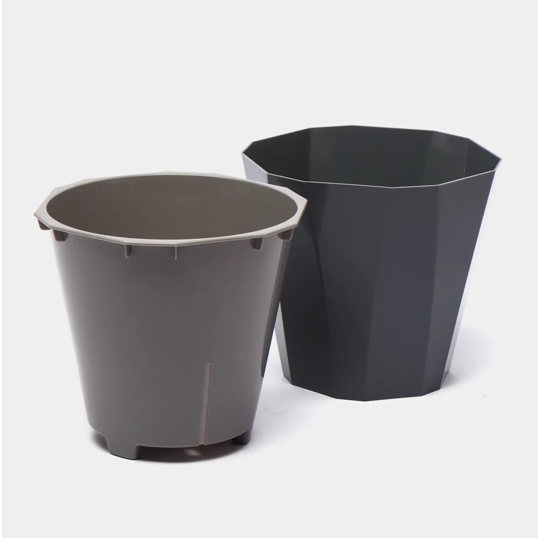 Кашпо пластм. "Палермо" 1,8л d верха 160мм h153мм со вставкой Темно-серое С316ТСЕР ("Мартика") *1/20
