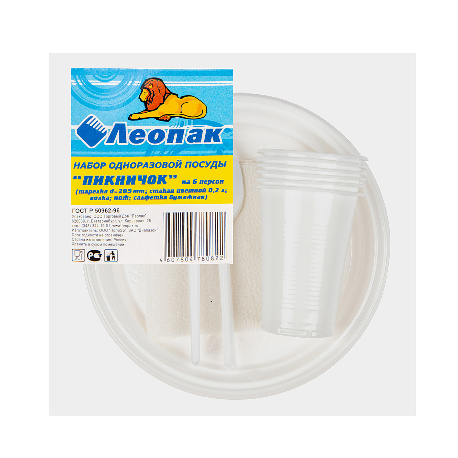 Одноразовая посуда Набор "Пикничок" 6перс/25пр.: тар.d205мм+стаканы0,2л-вилки+ножи+салф. *1/25