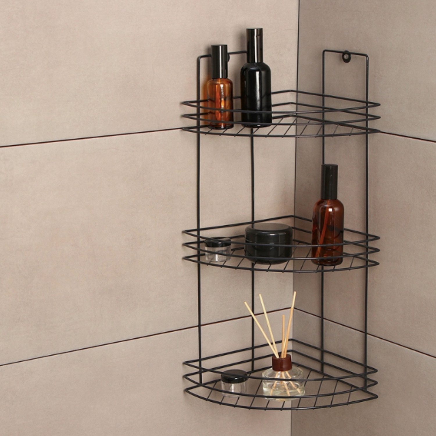 Полка угловая 3-х ярусная, 20×20×49 см, цвет черный 9043830