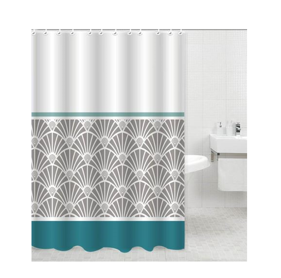Штора  для ванной "Aquadomer" п/эстер 180*180см "Узор зеленый" с кольцами XT-038 *1/25