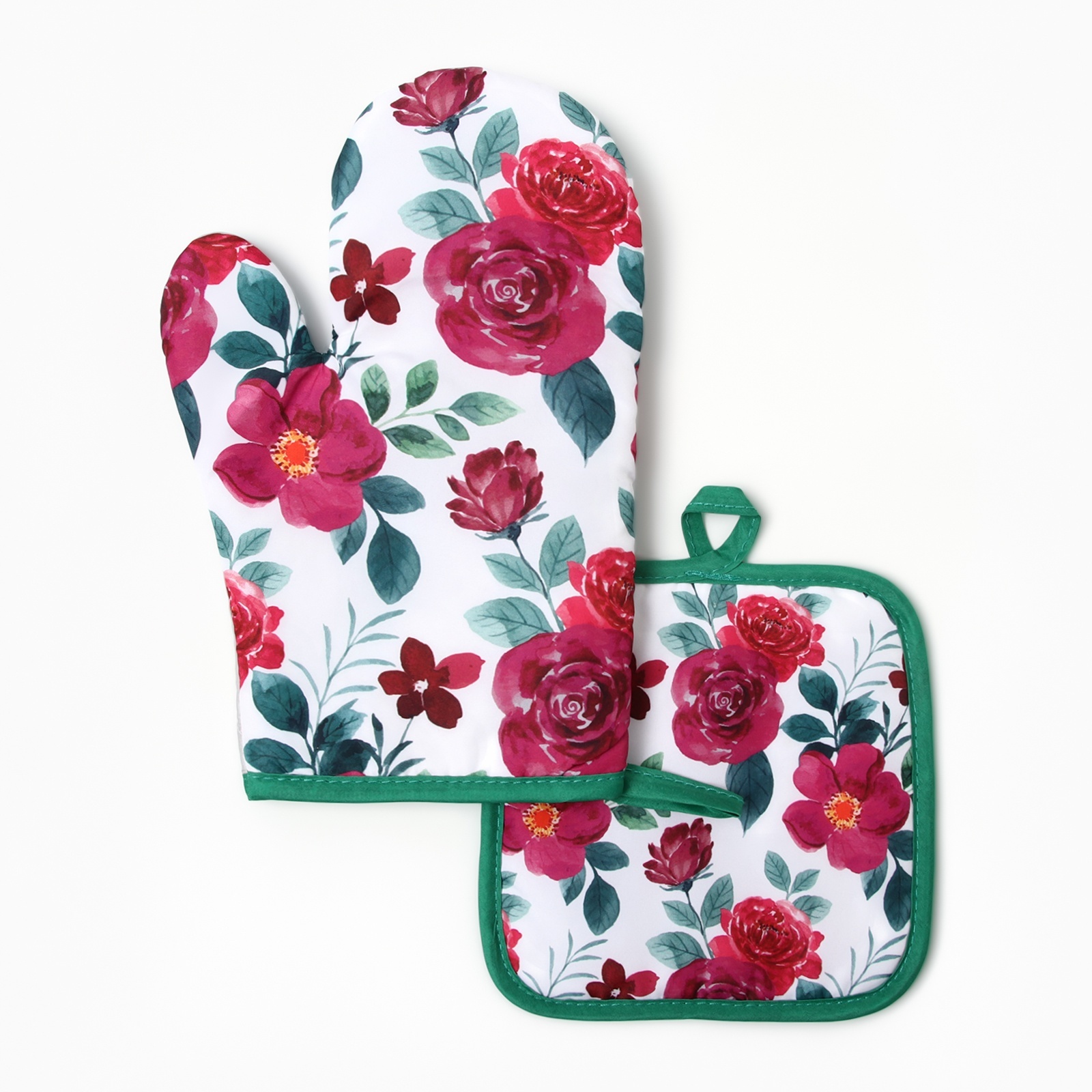 Набор прихваток Розы варежка-прихватка 26х16см, прихватка 17х17см, 100% полиэстер Доляна *1
