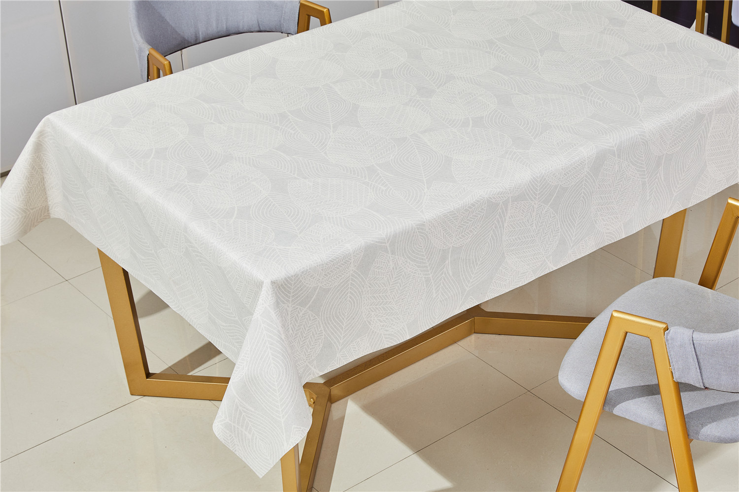 Клеёнка на тканевой основе, полиур.покр."Kleo" "Листья" белые на св.сером ш.1,37м SFPU-1011B *20