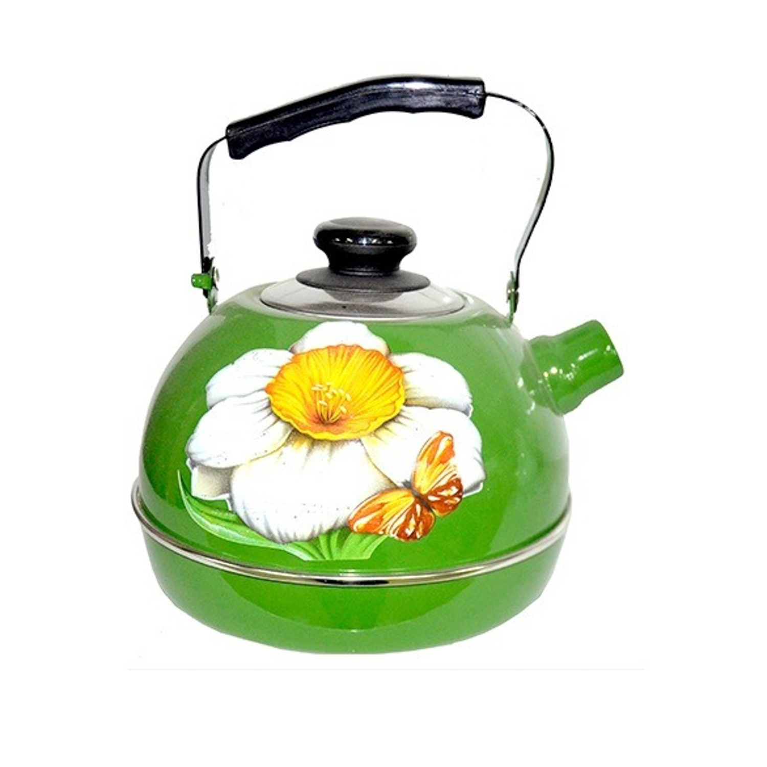 Чайник эмалированный со свистком 3,5л декор "Нарцисс" Зеленый ТМ04/35/07/07 *1/4