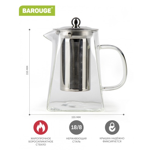 яяяЧайник заварочный жаропрочное стекло 950мл фильтр-сито (BF-508) "Barouge" *1/36