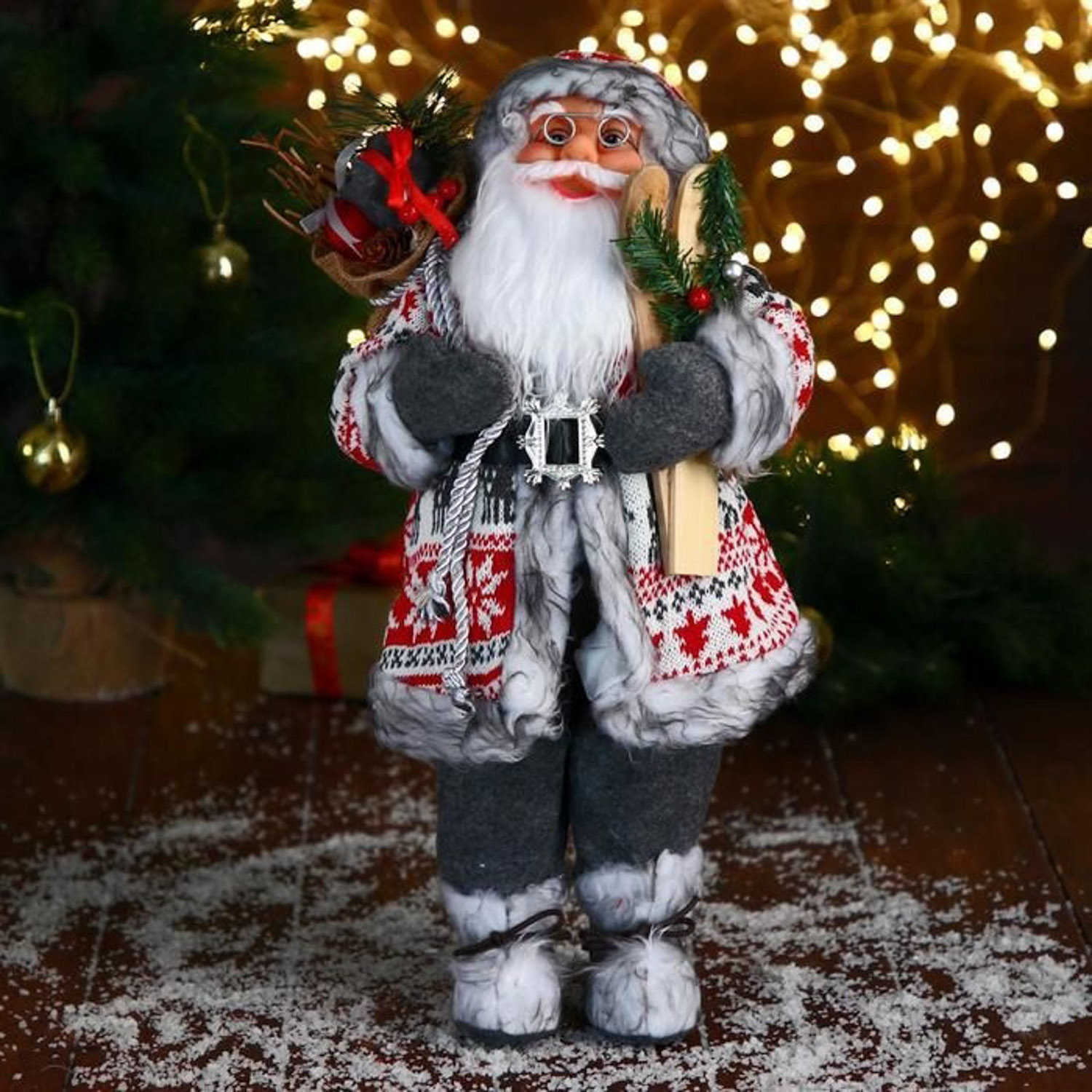 Дед Мороз "В бело-красной шубке с ремешком, с лыжами" 20х45 см 6938362