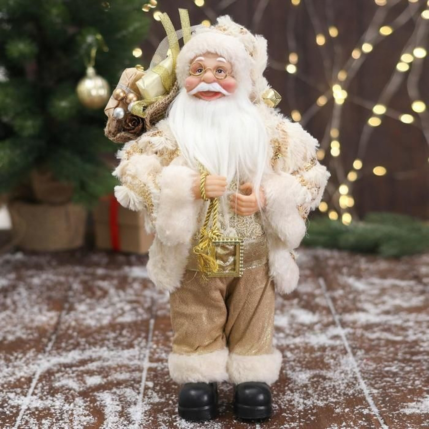Дед Мороз "В бело-золотистом костюме блеск, с подарками" 15х30 см 6949630