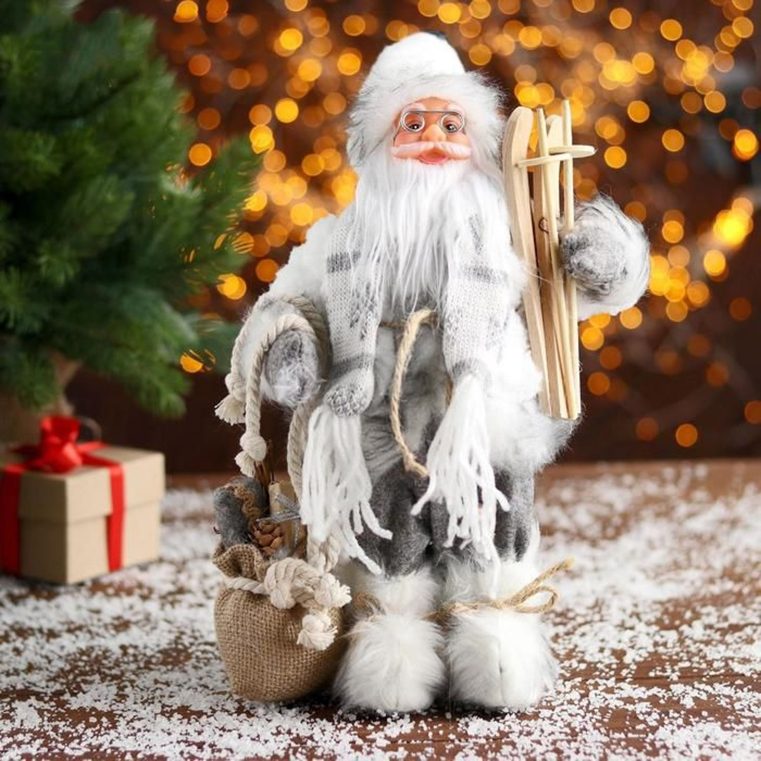 Дед Мороз "В белой шубке с лыжами" 18х30 см 5036026