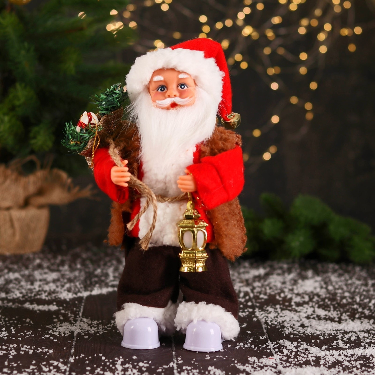 Дед Мороз "В красном тулупе, с колокольчиком/ фонарик" двигается, ботинки светятся, 13х28 см 6938388