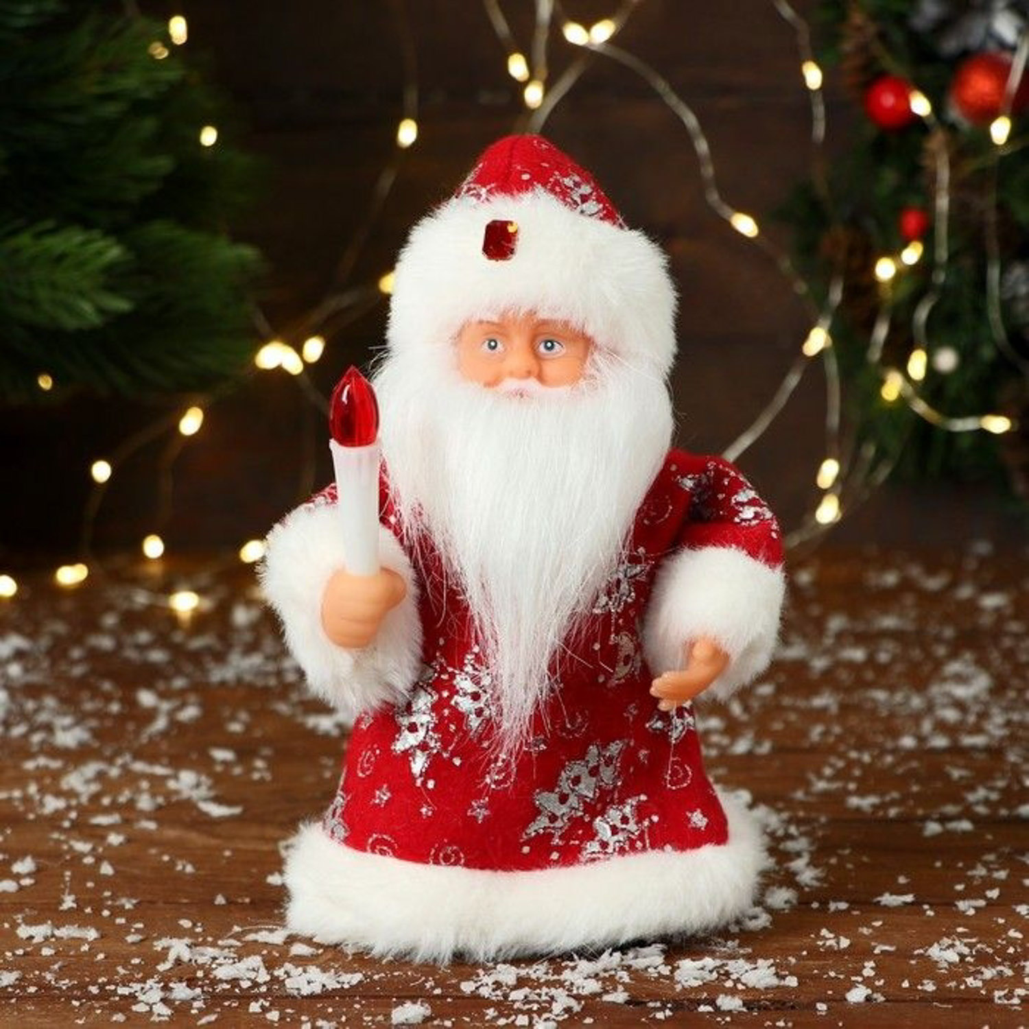 Дед Мороз "В узорчатой шубке с фонариком" 19 см, красный 9692498
