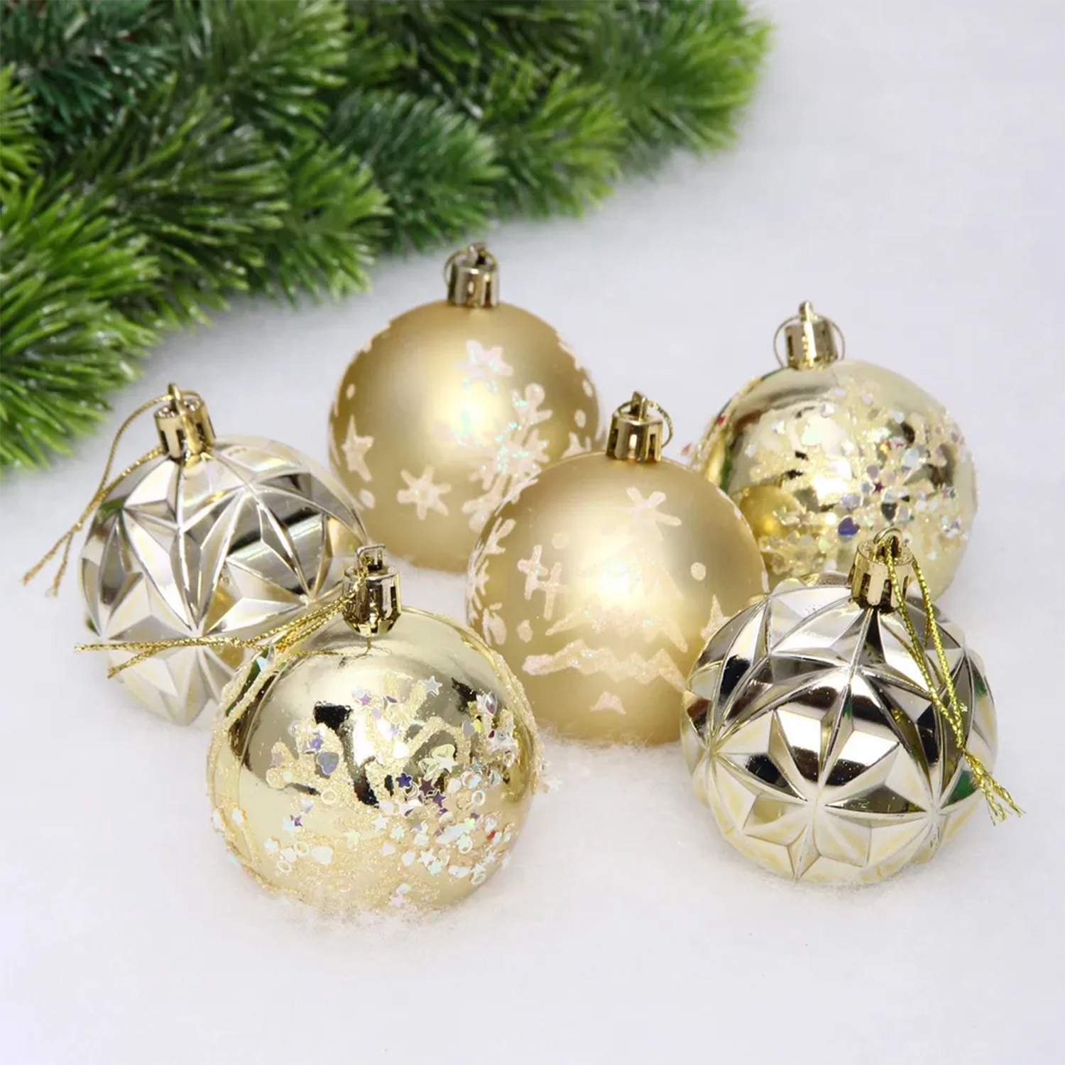 Набор шаров "Вивальди" 6 см (в наборе 6 шт), Золото