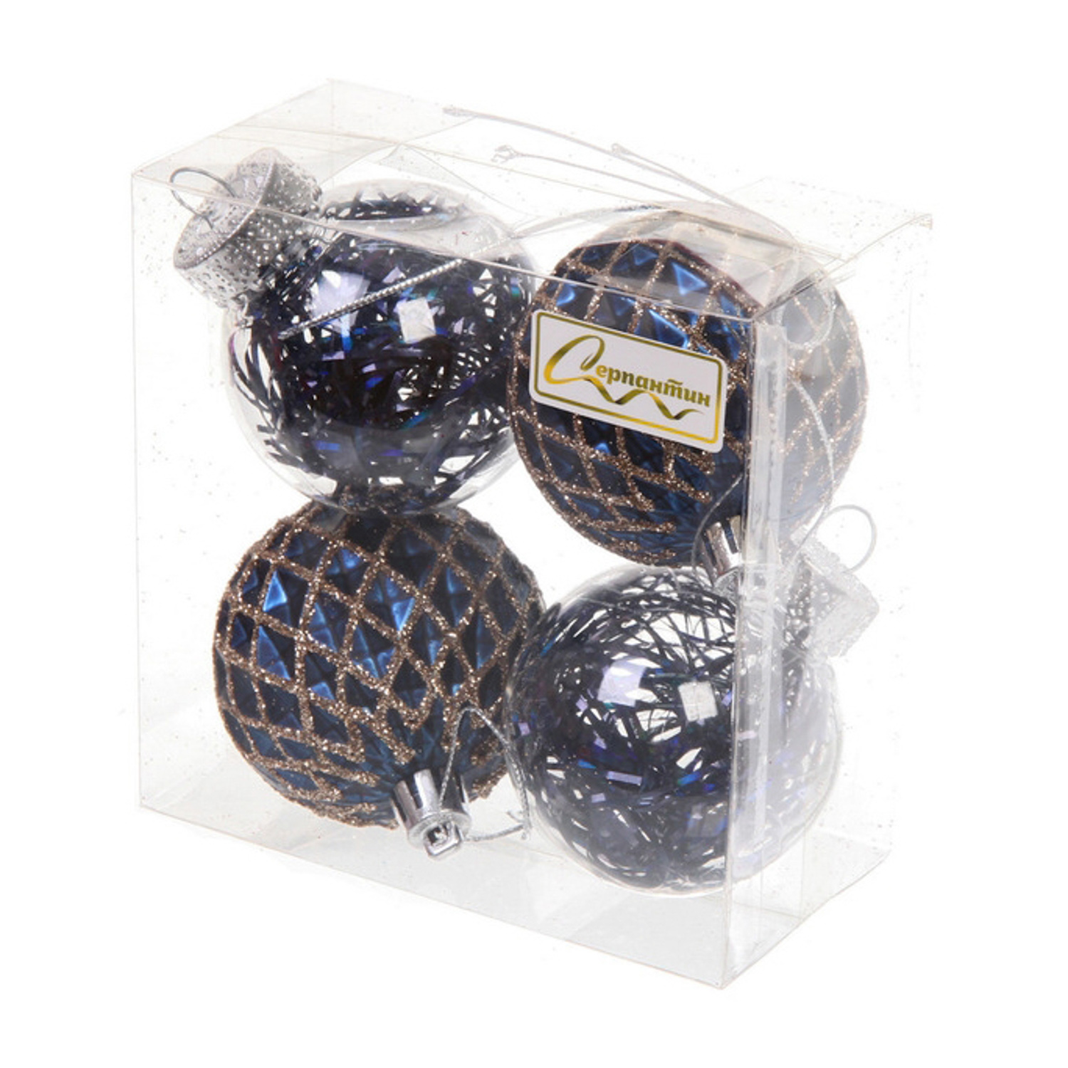 Новогодние шары 6 см (набор 4 шт) "Яркая метель", сапфир/шампань