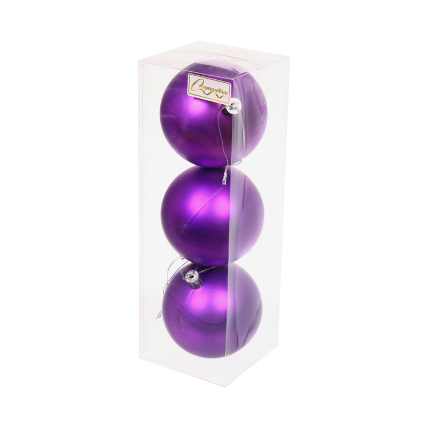 Новогодние шары 8 см (набор 3 шт) "Матовый", фиолетовый