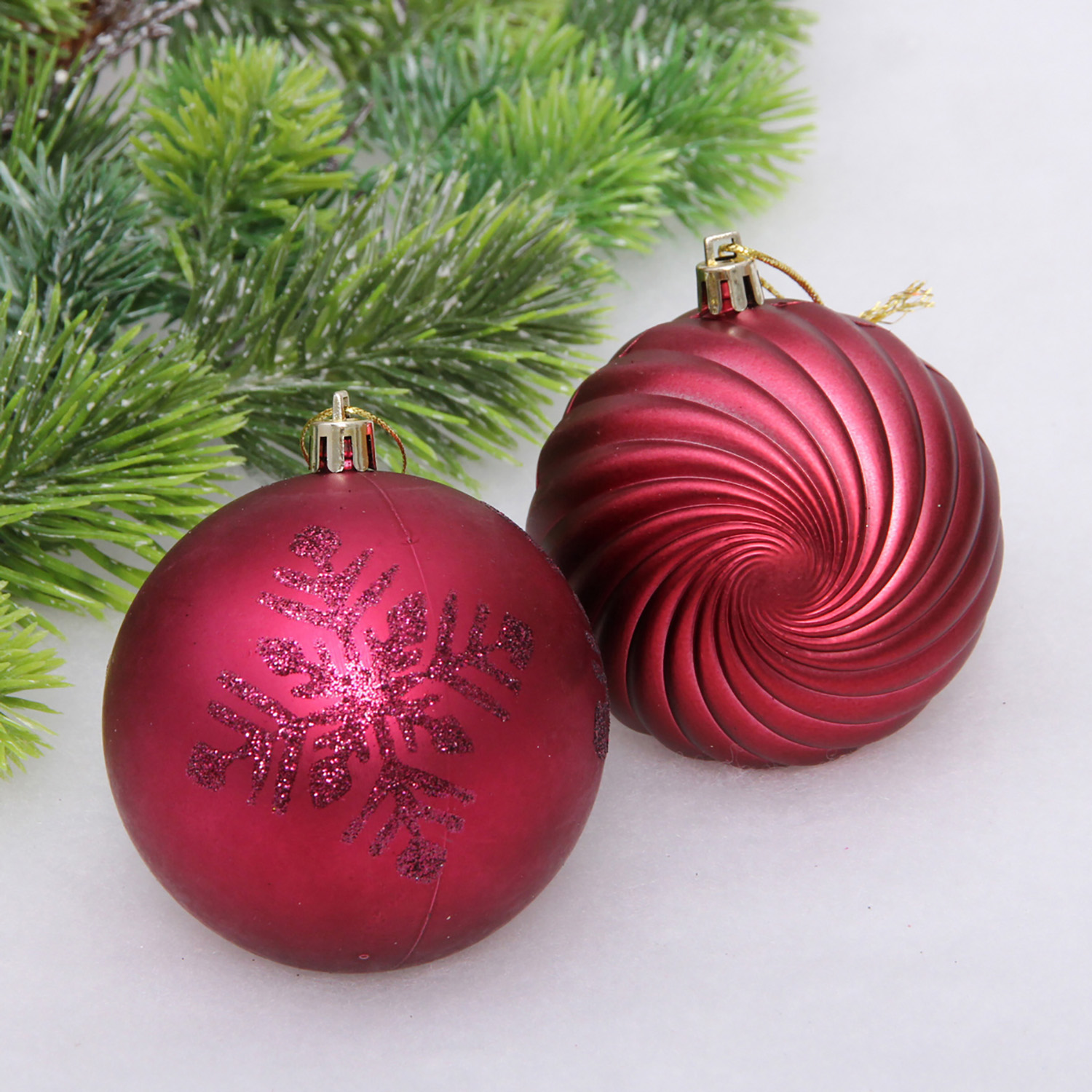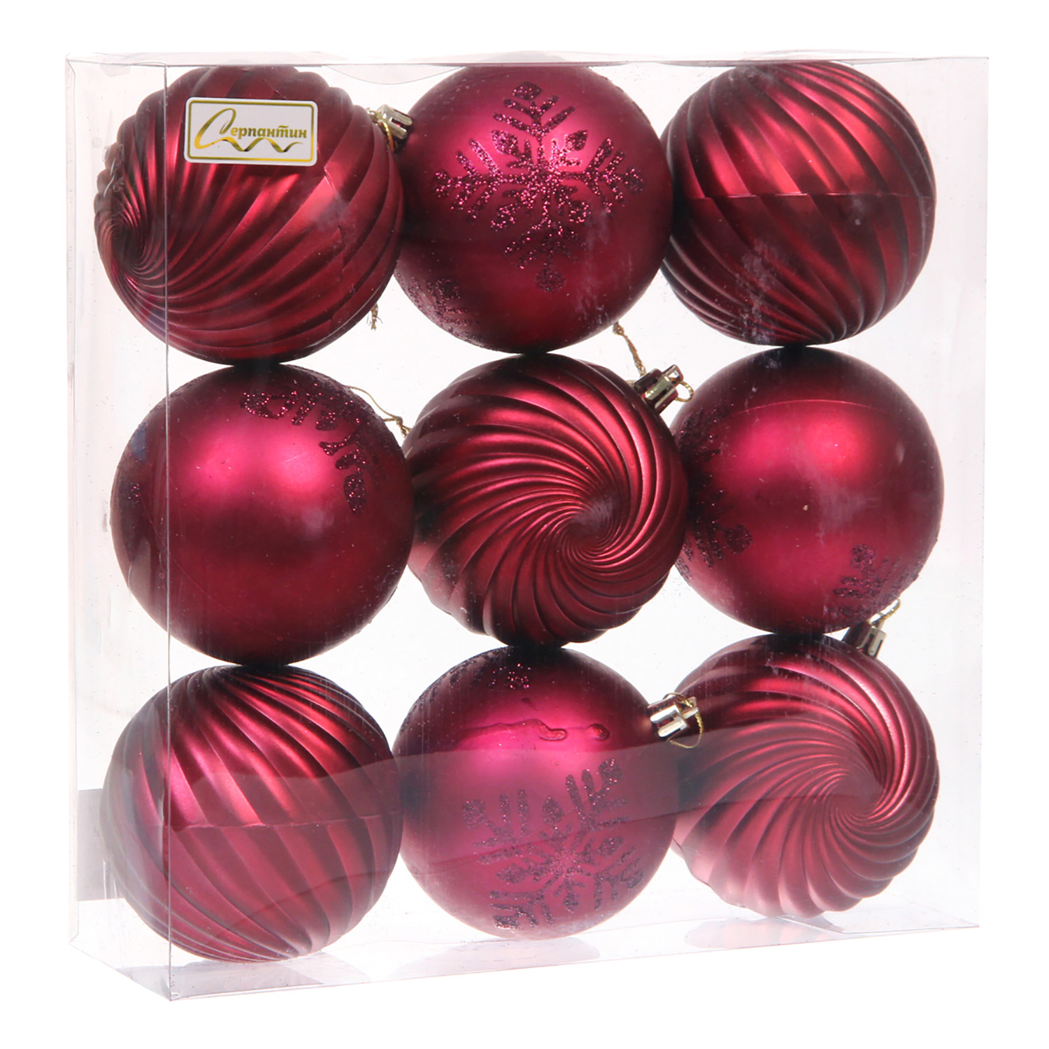 Новогодние шары "Изящные узоры" 8 см (набор 9 шт), Рубин