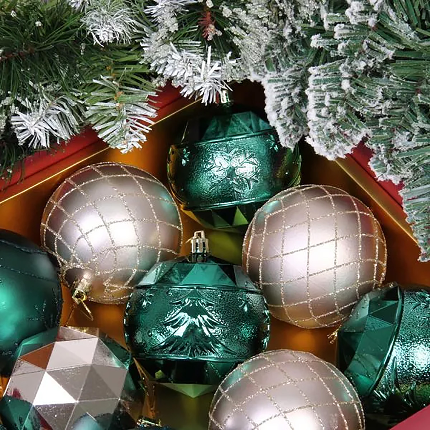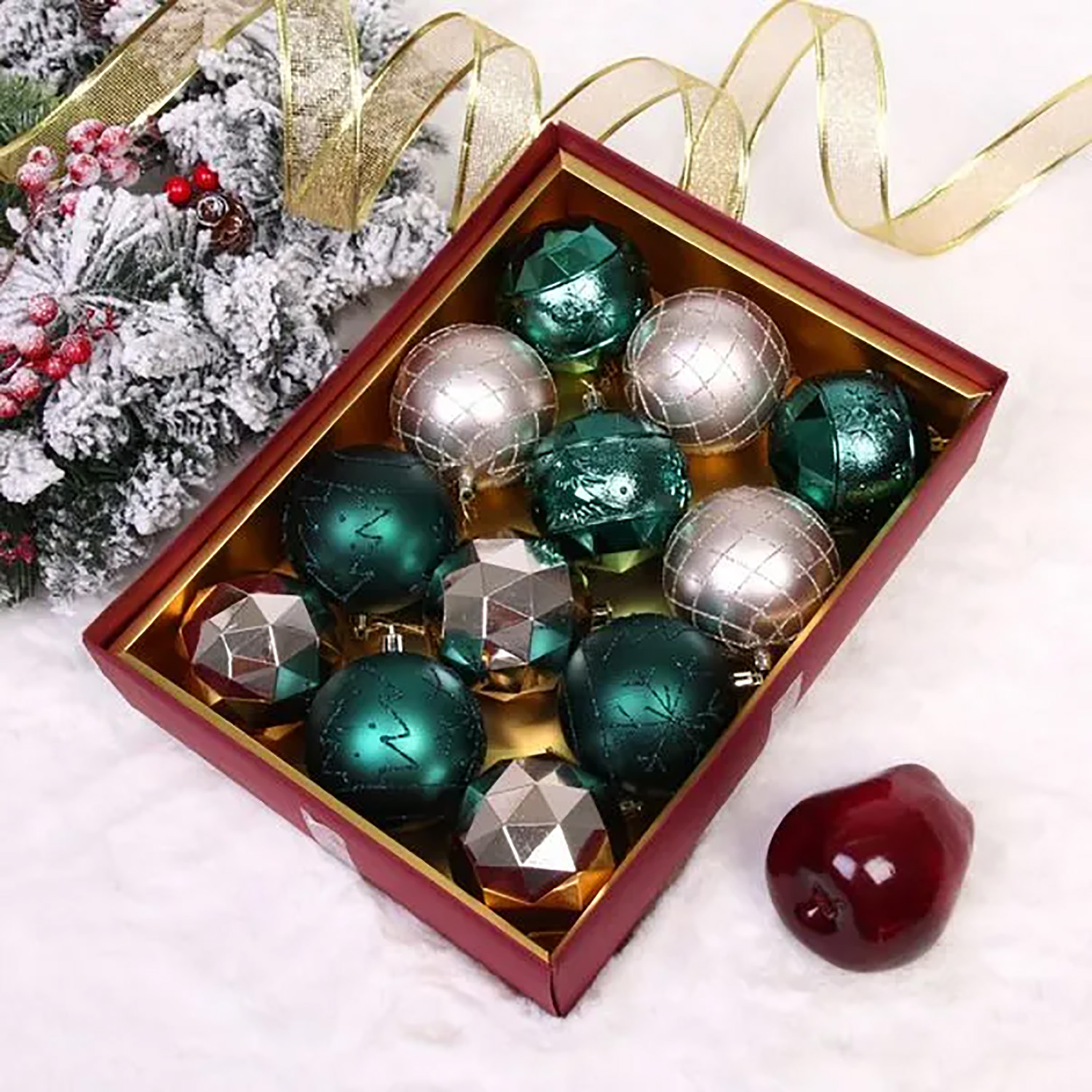 Новогодние шары "Волшебный вальс" 8 см (набор 12 шт), Изумруд/Шампань