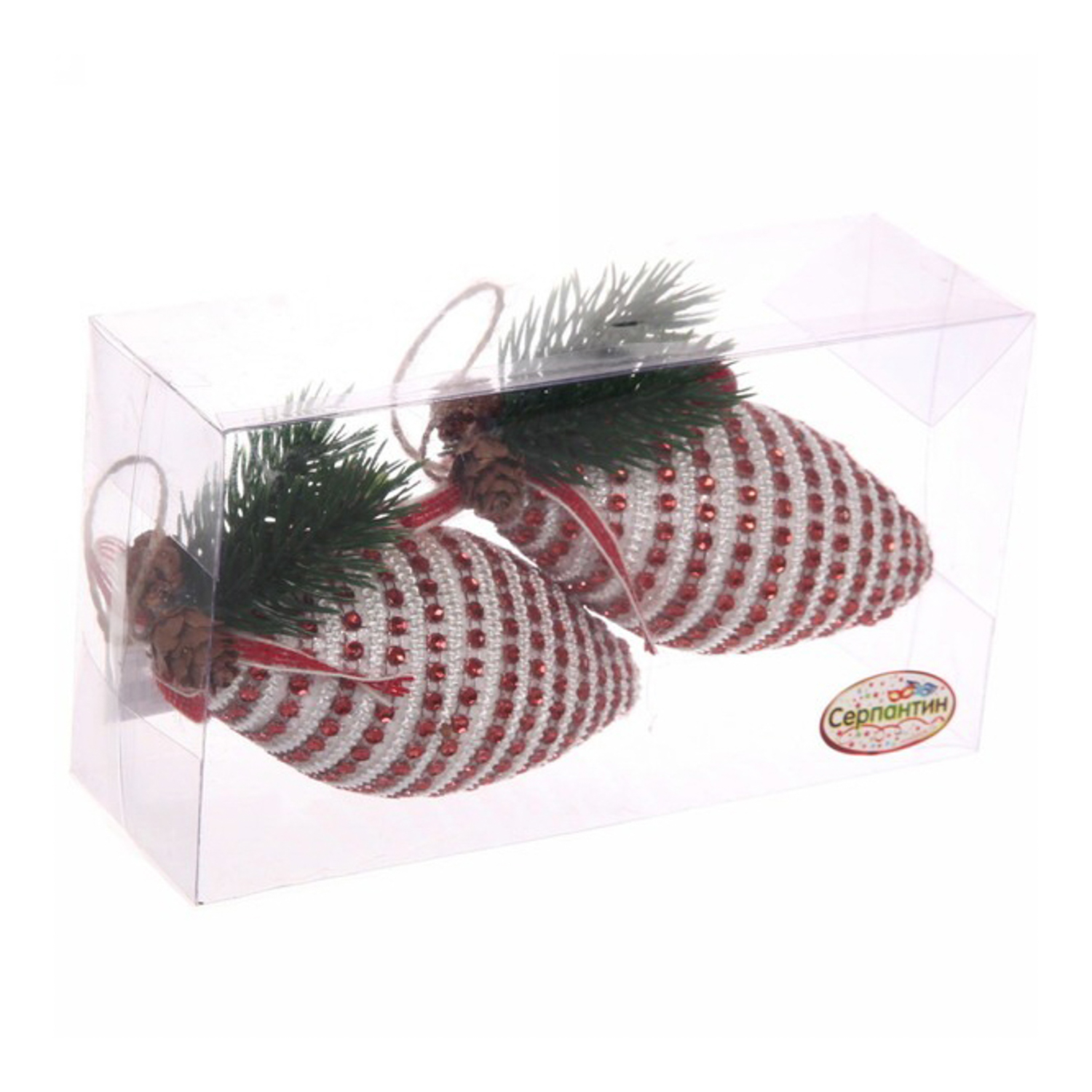 Ёлочные игрушки "Сосульки с бусинками" 12 см (набор 2 шт), Красный