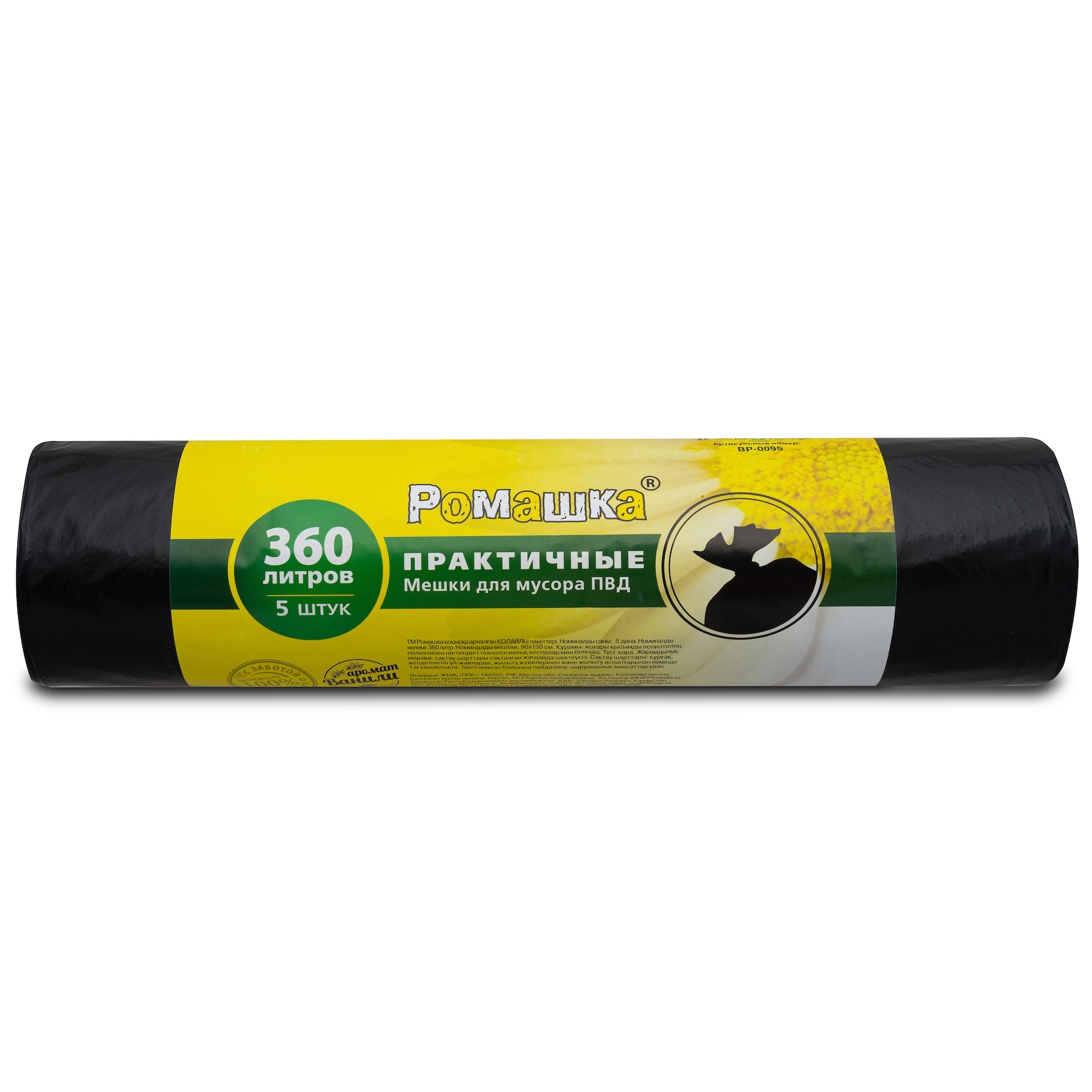 Мешки для мусора с завязками 360л*5шт толщ.40мкм "Практичные" ПВД ВР-0095 "Ромашка" *12