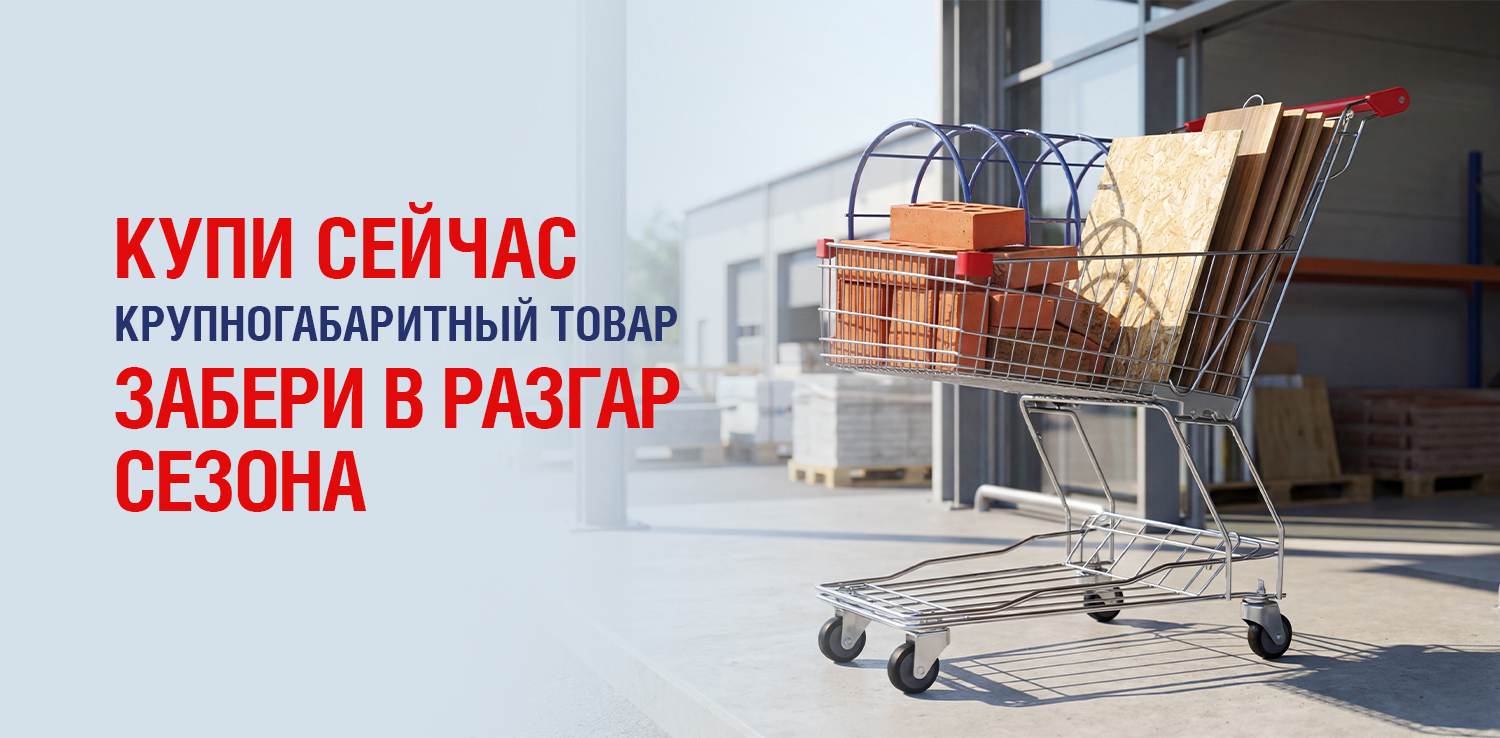 Покупайте листовые материалы, сухие смеси, дерево, кирпич, строительные блоки, тротуарную плитку, сыпучие товары, утеплители, укрывные материалы, поликарбонат, каркасы теплиц, напольные покрытия, керамическую плитку, двери, панели ПВХ или МДФ и другие крупногабаритные товары заранее — а забрать сможете позже, когда начнётся активный сезон работ. Мы бесплатно сохраним вашу покупку до 120 дней* — чтобы вы могли подготовиться без спешки, лишних хлопот и переплат. Отличный способ зафиксировать цену сегодня и спокойно планировать стройку или ремонт на будущее.