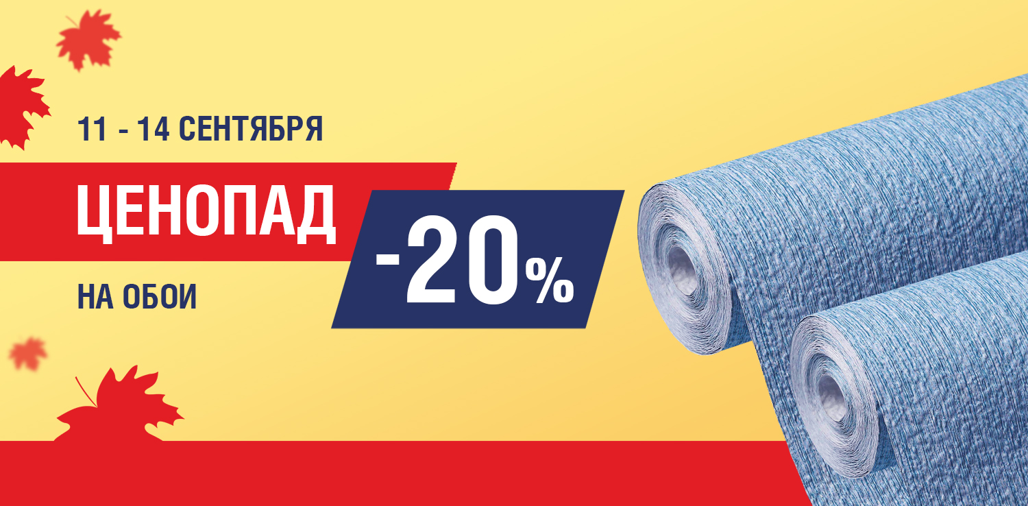 Осень — это пора ЦЕНОПАДа в ДомоСтрой! Готовите ремонт или мечтаете освежить интерьер? С 11 по 14 сентября вас ждёт скидка 20% на обои. Выбирайте стиль, экспериментируйте с дизайном и создавайте атмосферу, в которой будет приятно жить.
