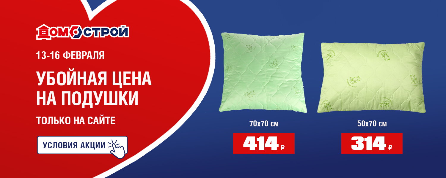 Условия отличаются: Ивдель, Первоуральск - в акции участвует только арт. ВЧ997 Подушка 50х70 см - 314 ₽; Красноуфимск, Реж, Тюмень - в акции участвует только арт. ВЧ999 Подушка 70х70 см - 414 ₽.